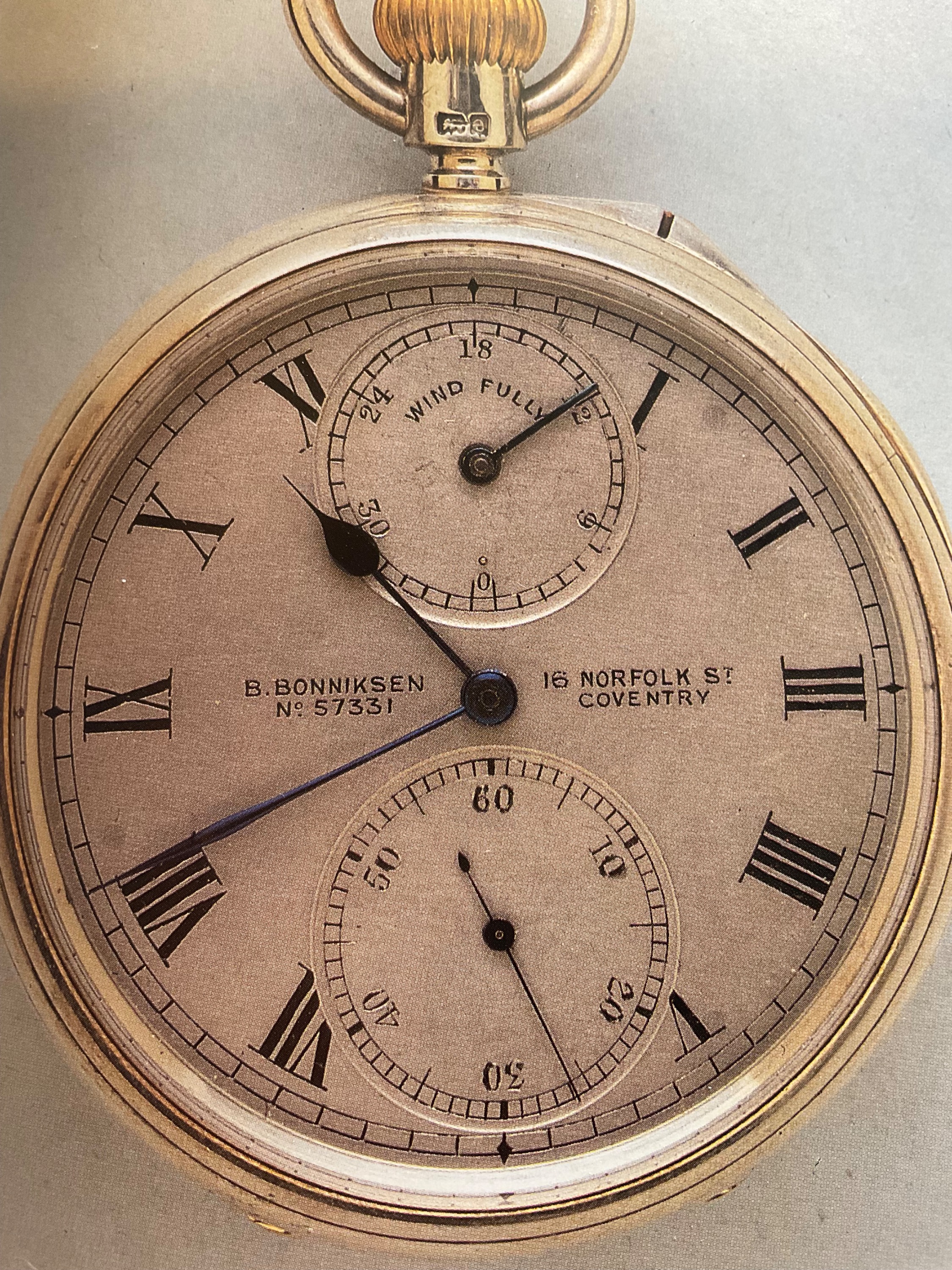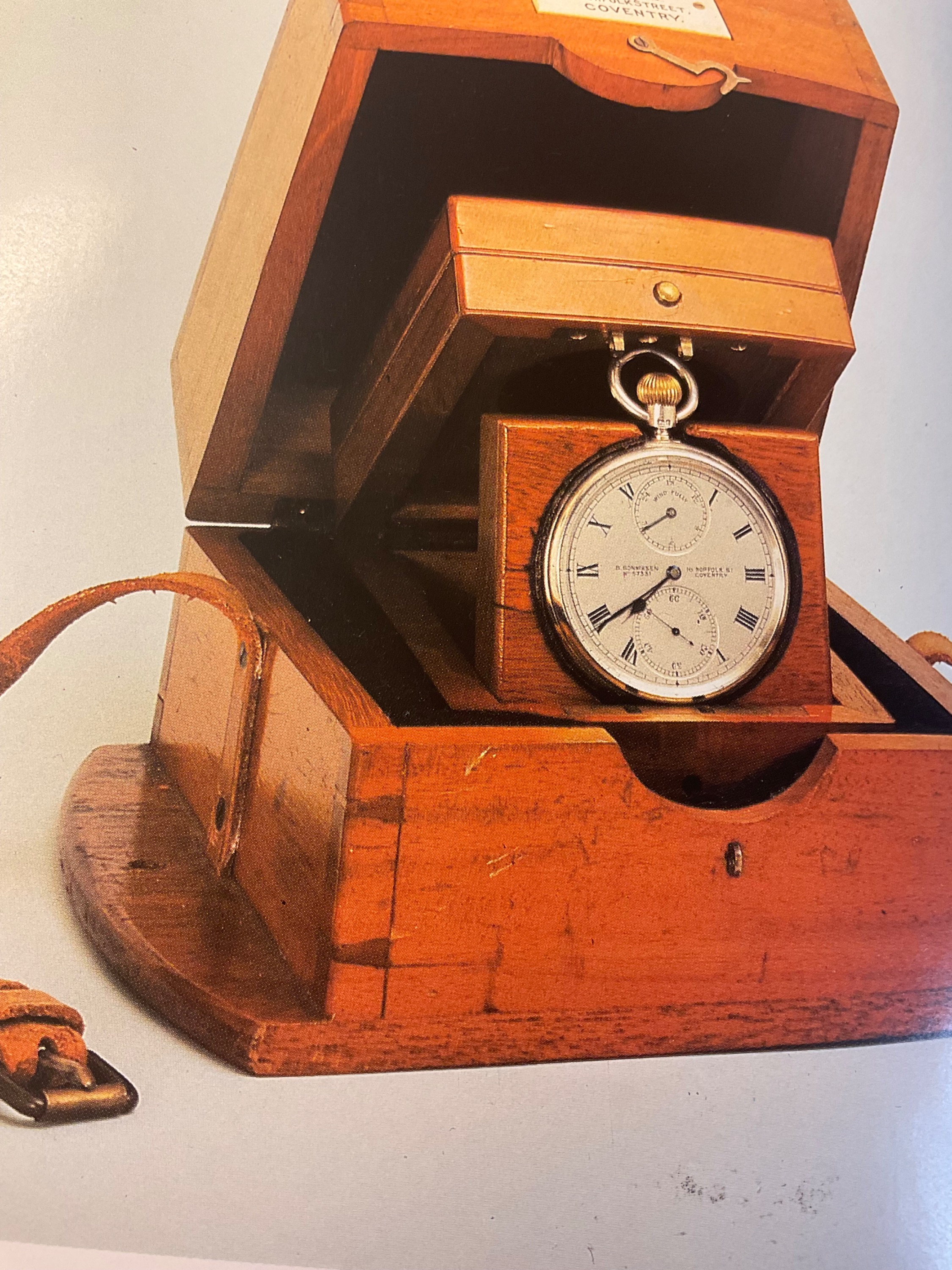 Auf diesen BILD ist ein Meisterwerk der B-Uhren zu sehen. Gefertigt von Bahne Bonniksen geboren in Schleswig, Dänemark, später GB, Coventry, Norfolk, von 1904, 3/4 Platinenwerk mit Karussellgang, Bimetall-Kompensationsunruhe mit Goldregulierschrauben, Breguet-Stahlspirale. Diese Uhr erhielt eine der höchsten Punktbewertungen bei der Chronometerprüfung in Kew- Teddingten. Leider existiert kein Bild von der Werksansicht!