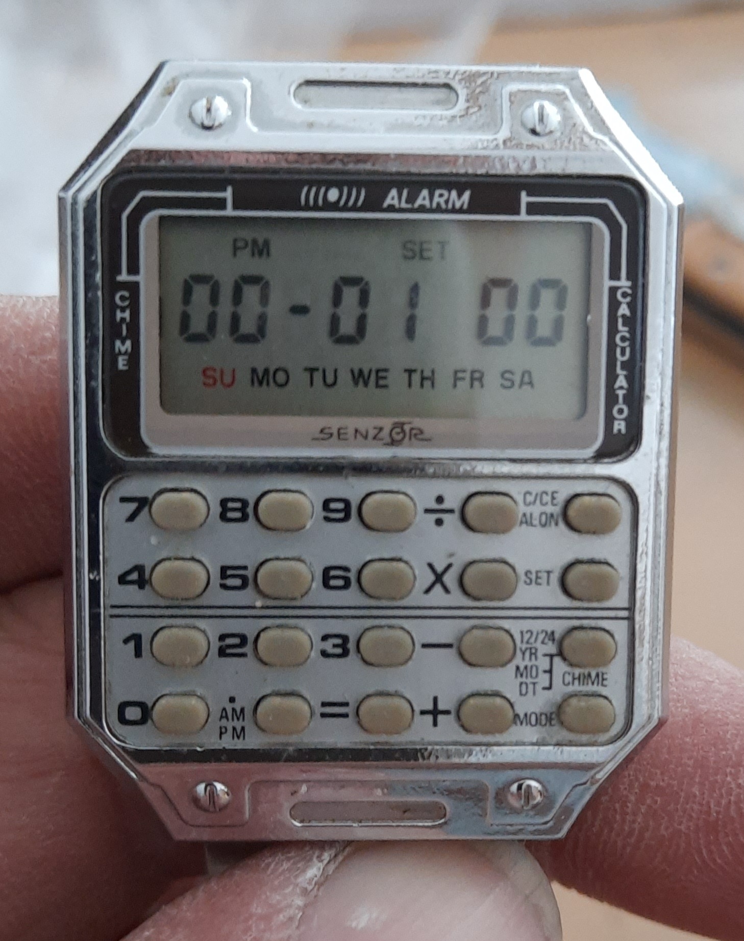 Hier hast du mal den Link für eine ähnliche. Von dieser Art gab es zahlreiche Variationen, mit immer anderer Anordnung der Multifunktionstasten. Ich hatte selbst eine mit zugehörigen Bedienungsstift, anders war die Mäuseklaviatur nicht zu bedienen! Diese Uhren waren eine Art Modeerscheinung und nur kurze Zeit am Markt.