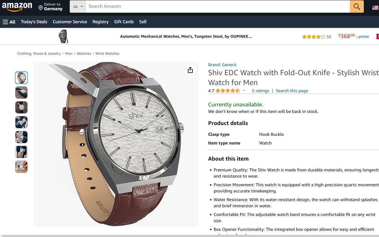 Persönliche Anmerkung von mir, ich bin auf diese außergewöhnliche Uhr durch die Sendung „Bares für Rares“ vorgestellt von der Schmuckexpertin aufmerksam geworden, und dachte mir, das ist etwas für unser „Raritäten Kabinett“. Preise heutzutage im Internet für die Uhr zwischen 1 000.- und 2 000.-Euro im Fullset (Die Uhr war in einer durchsichtigen Piramide verpackt.)