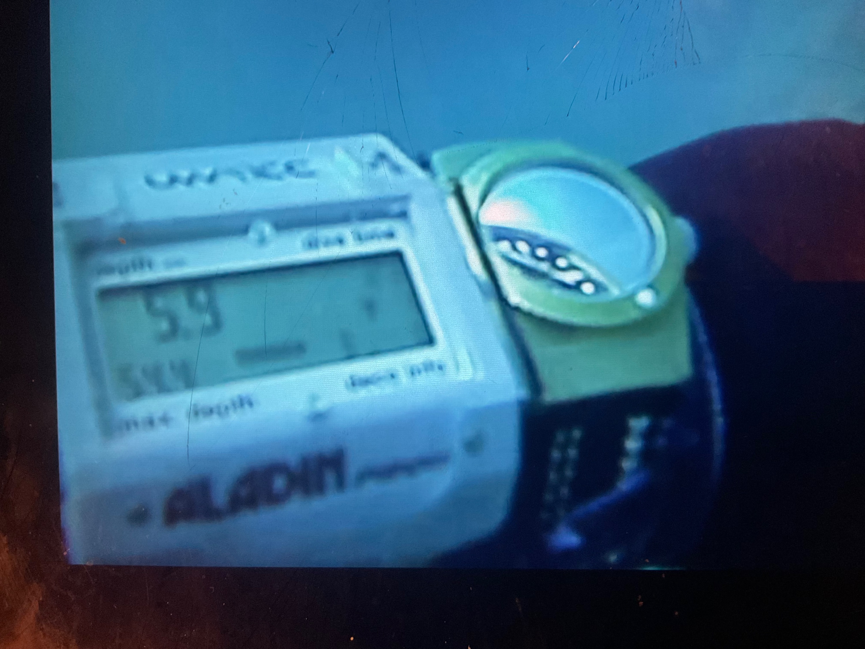 Ich würde sagen, das ist ein Tauchcomputer. So etwas als Armbanduhr zu tragen, wäre sicher ähnlich unbequem und unpraktisch, wie mit Taucherflossen joggen zu gehen...