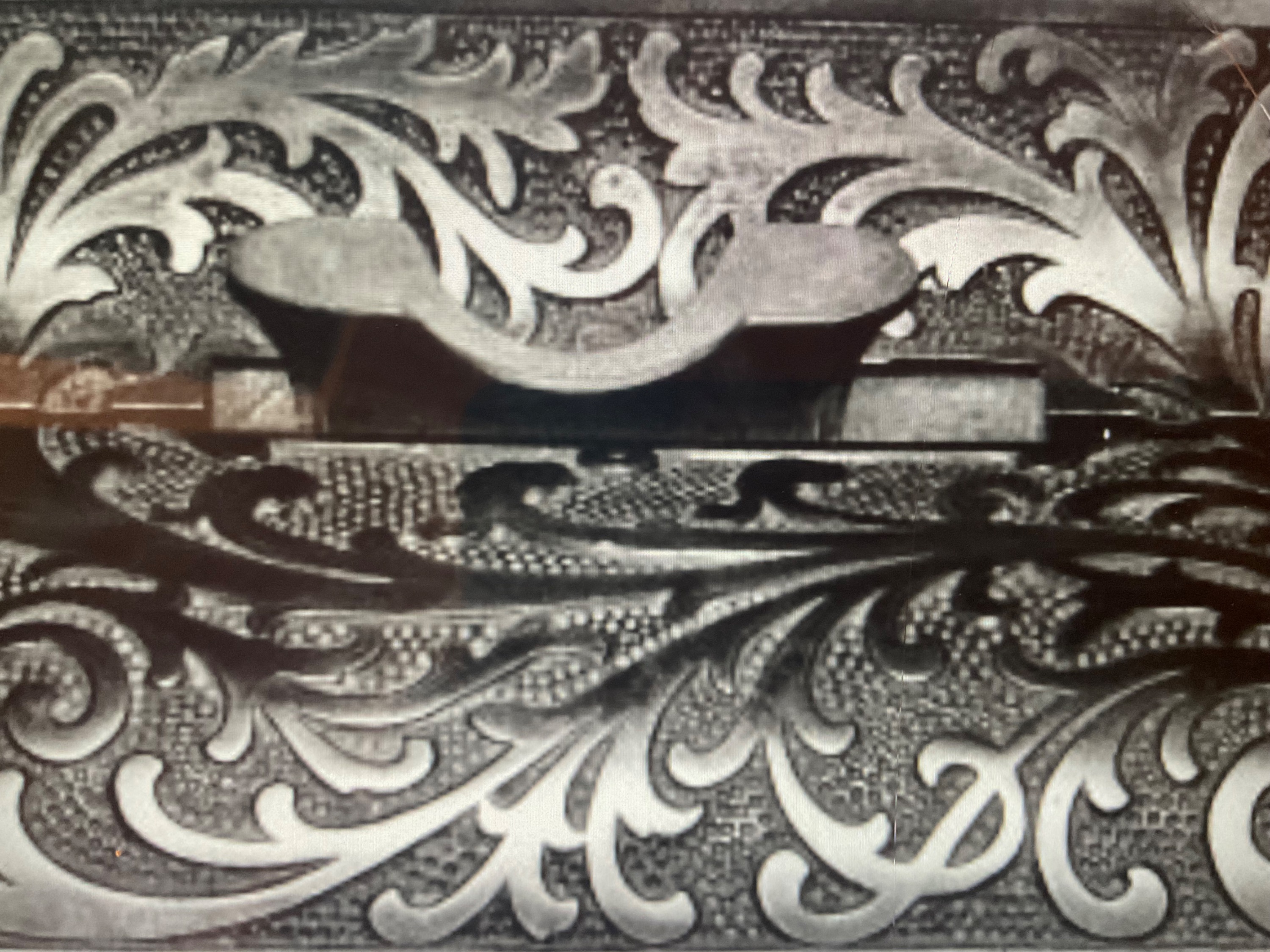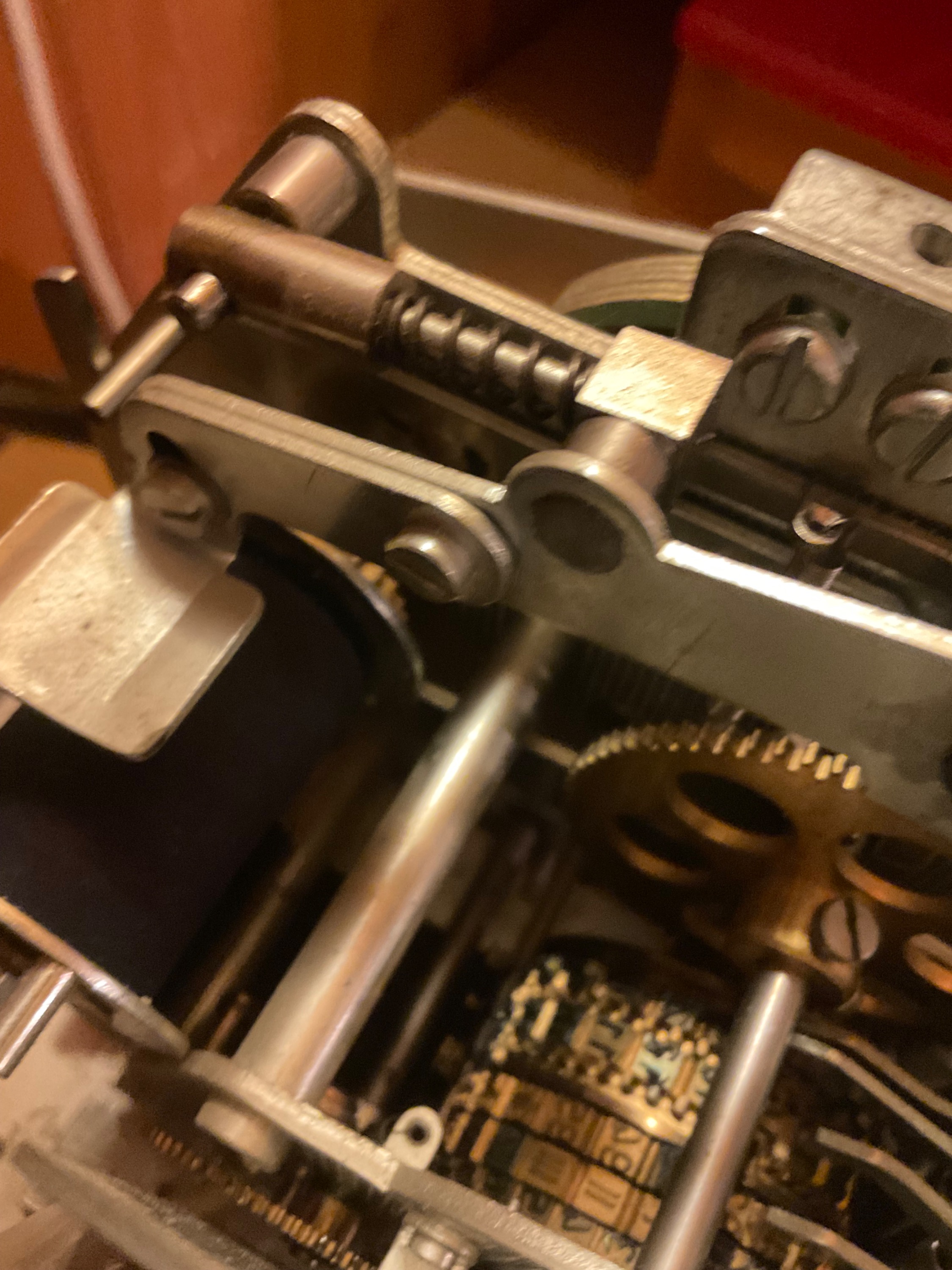 Hier zu ersehen die reichlich verzierten Gußteile zur Führung des Kartentrichters. Es ist der untere Bereich des Kartenapparates Rochester.