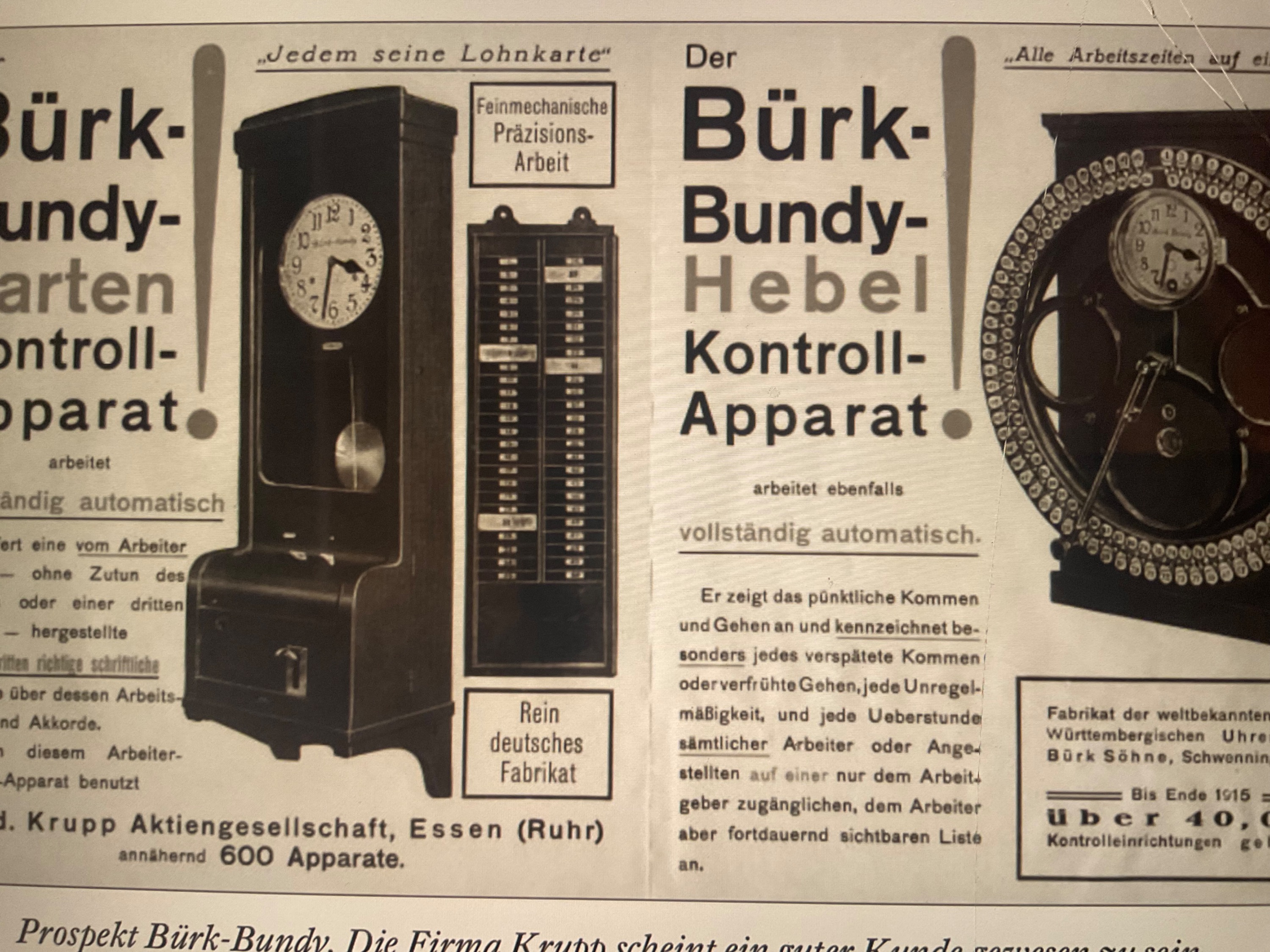 Ein weitere großer Hersteller war Bundy Gesellschaft,, diese entschloß sich ihre Geräte in Deutschland in Lizenz bauen zu lassen. Hergestellt wurden diese bei der Firma Bürk in Schwenningen. ( wird so manchen ein Begriff sein, auch mir-Mutteruhr-)