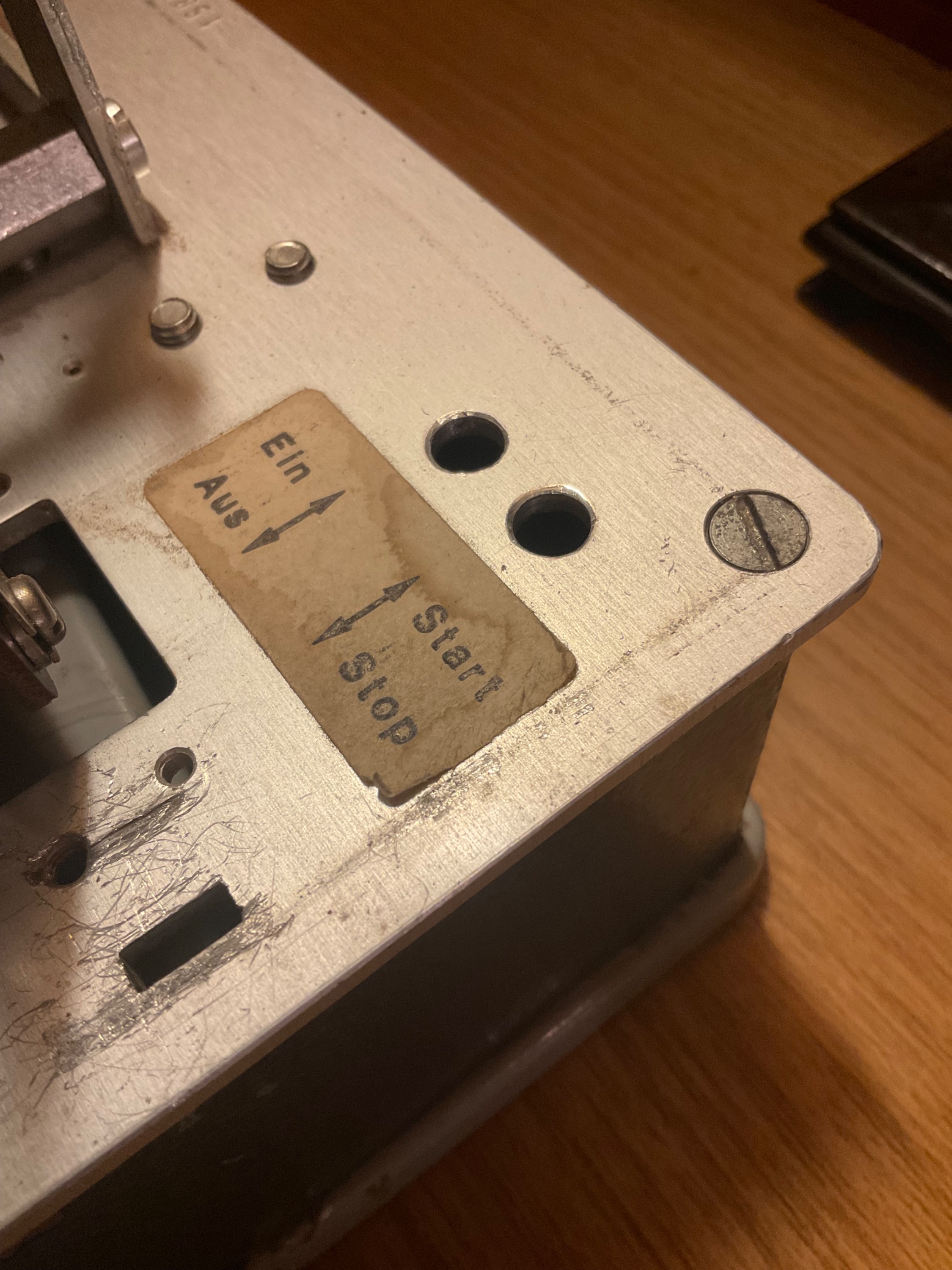 Hier der Ein-Aus, bzw. Start, Stopp Teil, der fehlt, statt dessen im Inneren eine verbastelte Version
