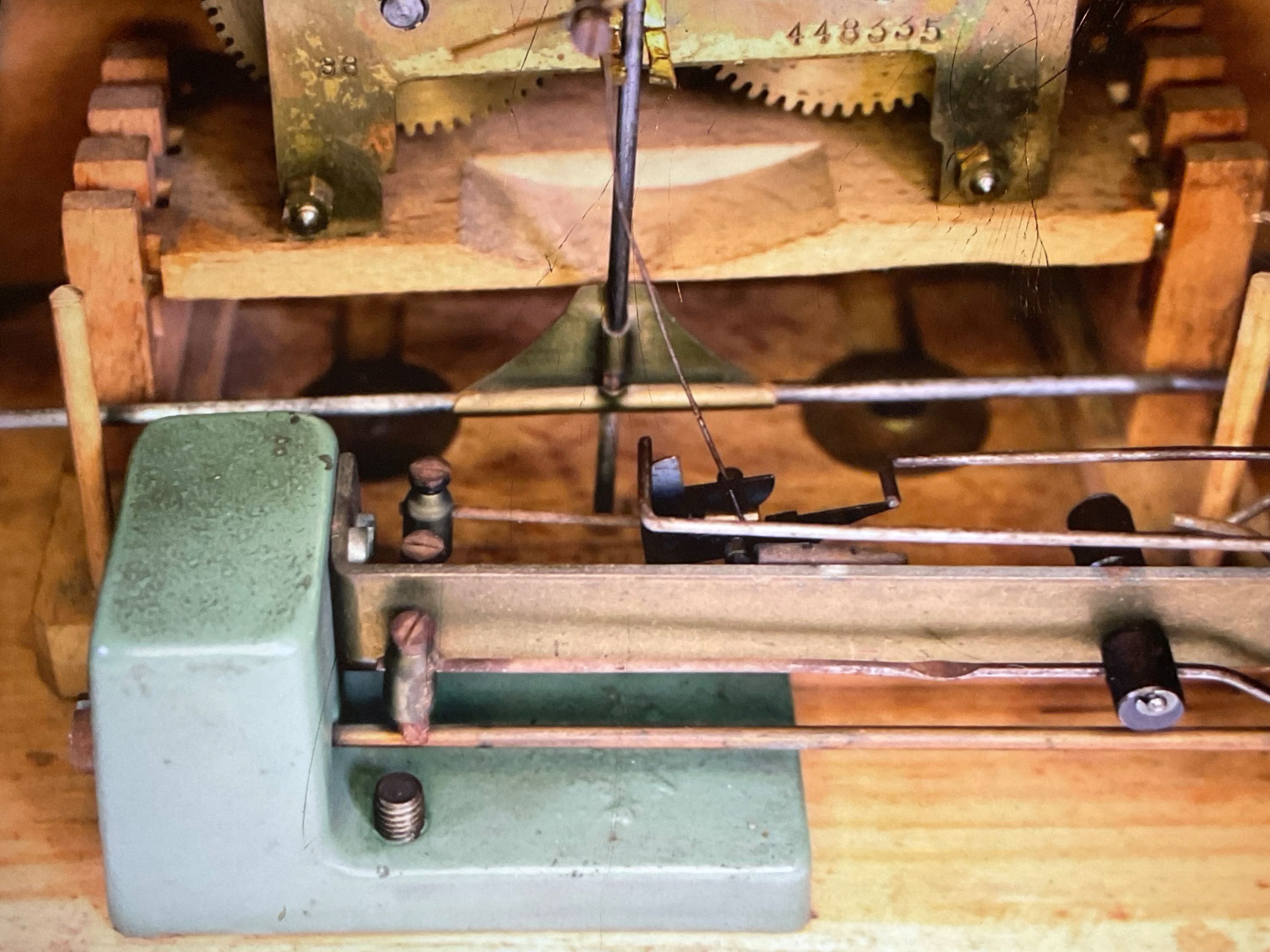 Uhrwerke waren genügend da, es waren aber überwiegend Regulatoren-bzw. Wanduhren, Junghans, Kienzle, Becker und dergleichen, mit entsprechend langen Pendel, über 40 cm, wie sollte man aber dies in kleineren Gehäusen, Tischuhren, Buffetuhren unterbringen, denn Holz war Mangelware, und außerdem waren die großen Ungetüme an der Wand nicht mehr modern genug, es ging der Trend zu kleineren Uhren.