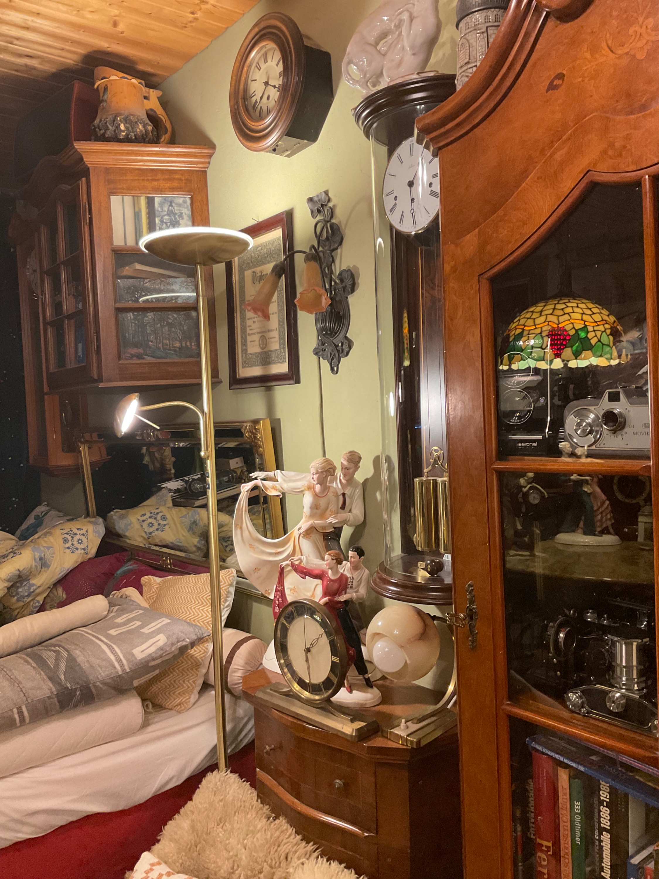 Das mit den Batterien ist nicht so tragisch, drei sind DCF gesteuert, vier Stück mit 220 Volt, am meisten Arbeit machen die Chronos, da möglichst sekundengenaue Einstellung, je nach Lust und Laune manchmal alle auf einmal Umstellung, manchmal mal die, mal die. Ich habe ja im Wohnzimmer nochmal 15 Stück!