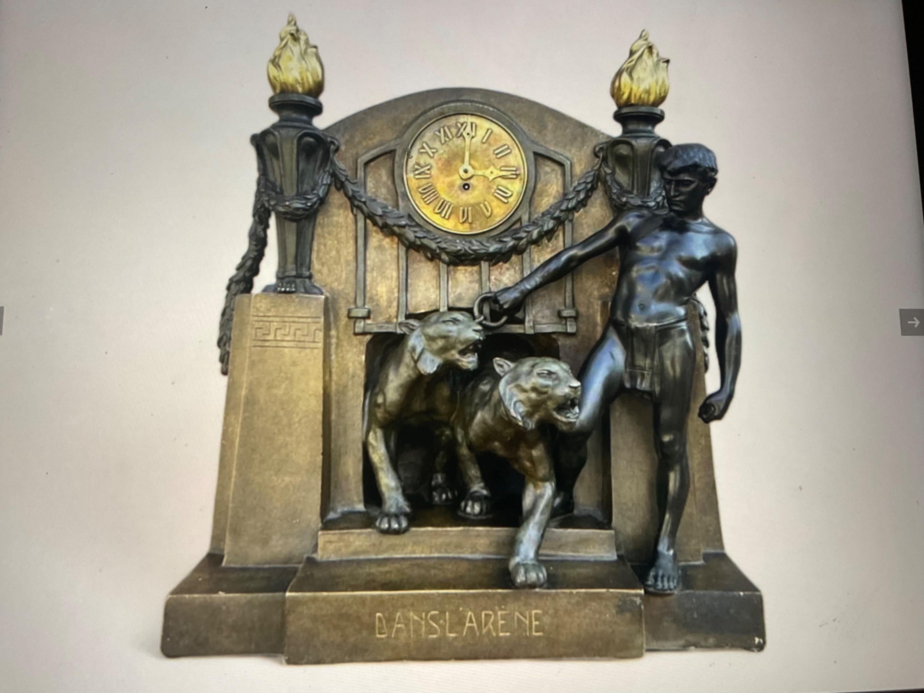 Diese Uhr mit den Werk von Lenzkirch zeigt symbolisch wie ein Sklave das Tor zur Arena öffnet, um die Raubtiere einzulassen. Zu „Lenzkirch“ noch ein paar Worte, der Inbegriff für feinste Uhrwerke von höchster Qualität.