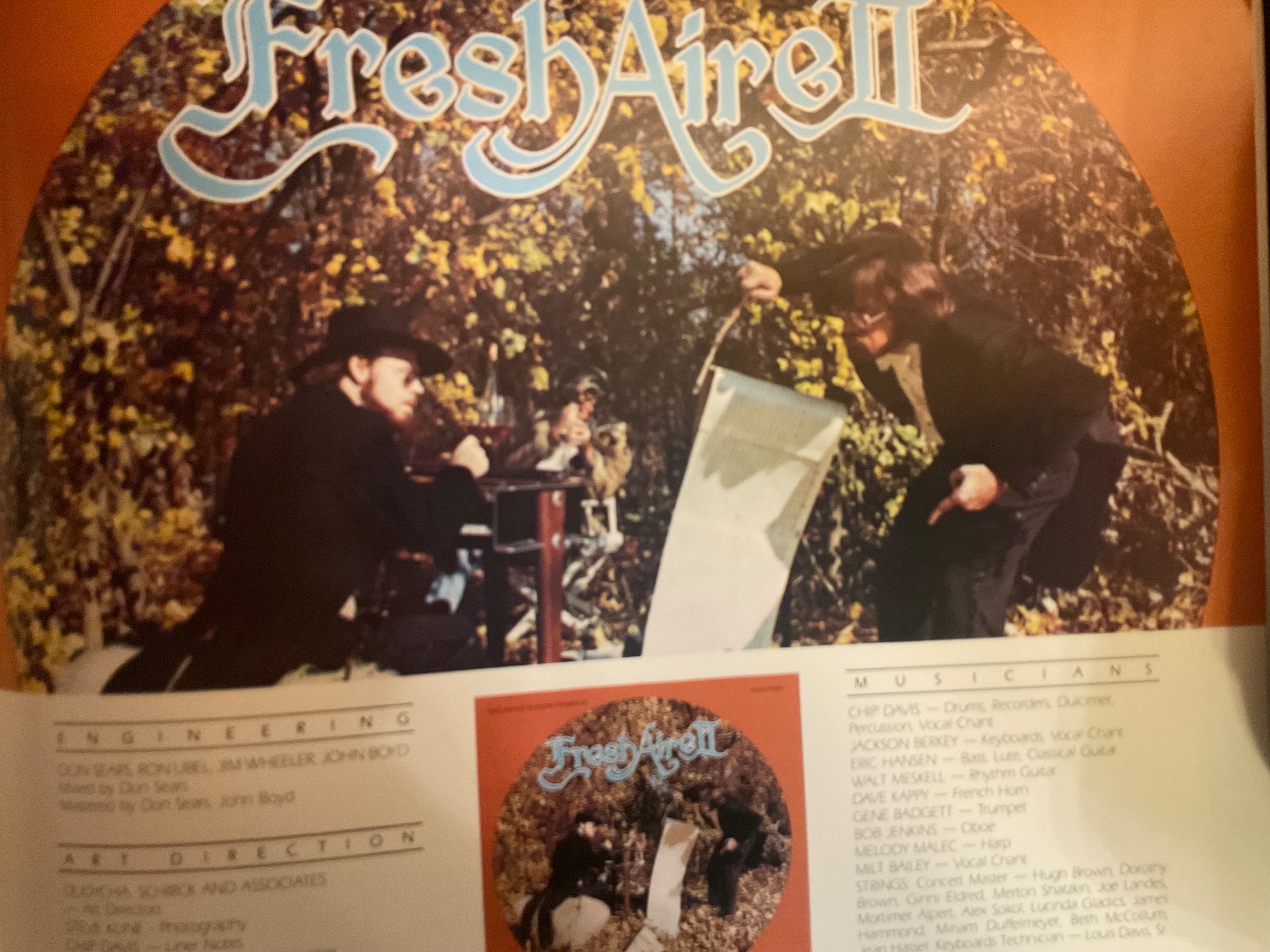 eine audiophile Legende, die vier ersten „Fresh Aire“ Platten vom Studio-Projekt Mannheim Steamroller, des amerikanischen Klangdüftlers Chip Davis, die zwischen 1972 und 1978 erschienen. Der akustische Reiz ist einfach ungeheuer und phantastisch. Vogelgezwitscher, rauschende Blätter und Bäume, ein einzigartiges Erlebnis, da in der freien Natur aufgenommen. 200 Sammelkasetten erschienen nur, ich konnte eine ergattern. Zu den Platten gibt es noch ein reich bebildertes Begleitbuch, von dem ich hier ein paar Bilder zeige