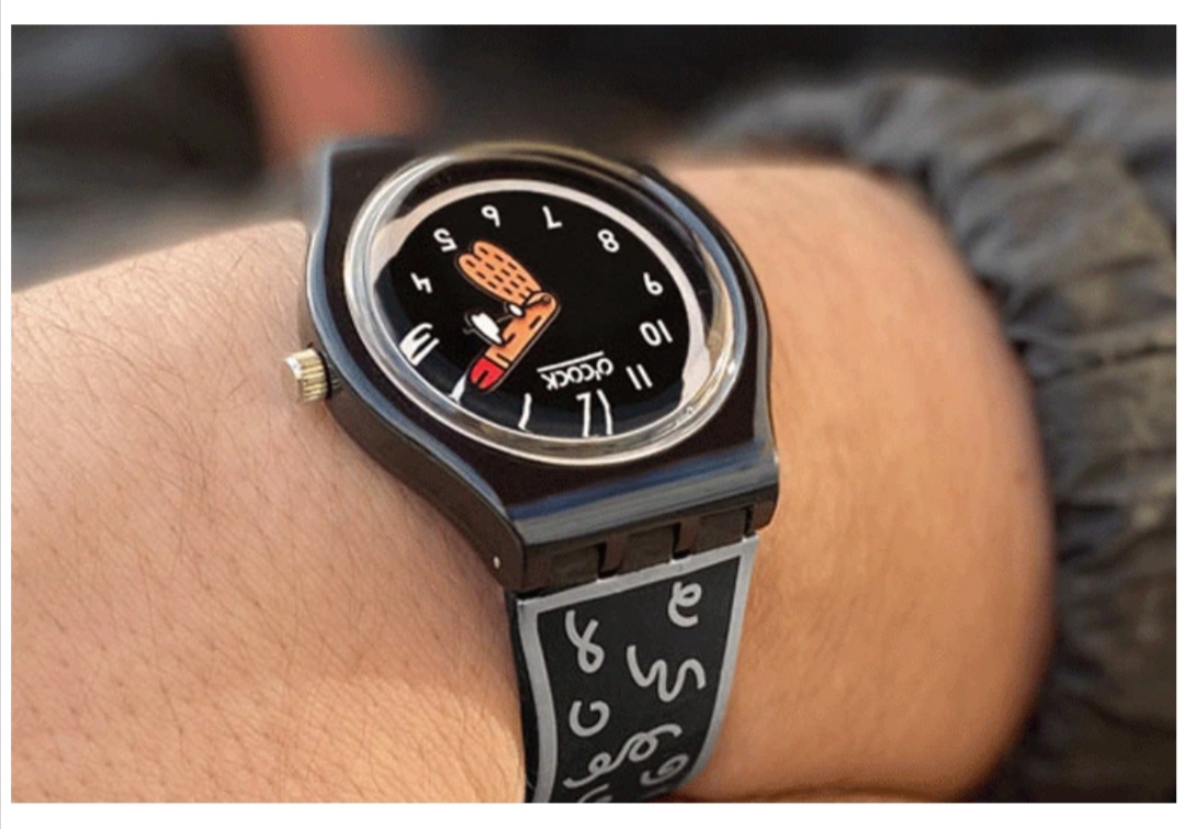 Kennzeichen dieser Uhr sind Parkplatztreff-freundliche Zeiger, für Leute, die gerne zeigen möchten wo der Hammer wann und wo, wie, hängt. Oder eben nicht.