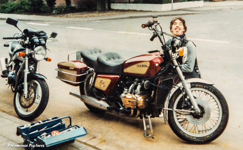 Mal was ganz anderes: Mir fiel gerade ein altes, zerknittertes und unscharfes Photo in die Finger, welches mich und mein damaliges Moped (Honda GL 1000 K0 "Gold Wing") zeigt. Kurz vor einem Bikertreffen noch schnell putzen und Ölstand checken