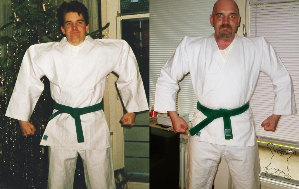 Sehr coole Idee, Dirk. Selbst Schuhe und Jacke bei den oberen Pics sind identisch. Aber nach all den Jahren immer noch beim grünen Gurt?