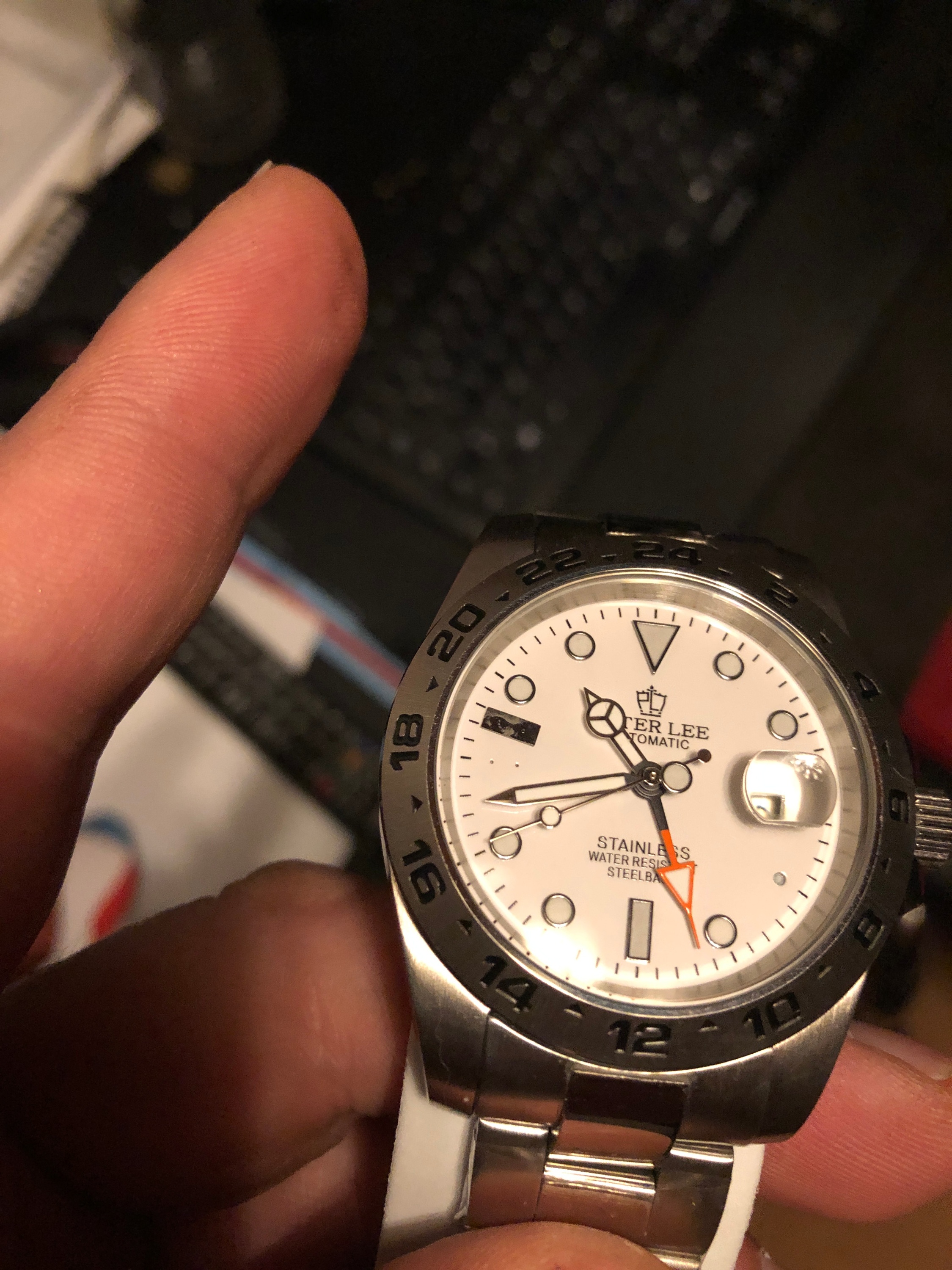 07 Dez. 2019 19:28Eigentlich recht hübsch, der Wecker. Das Zifferblatt ist recht nah am Original, die Lünette auch. Leuchten kann das Gerät auch, wenn auch nicht sehr lange. Die Endlinks stehen ein wenig über den Hörnern, aber das ist unter anderem den miesen Federstegen geschuldet. Werde die demnächst mal tauschen. Der GMT-Zeiger lässt sich nicht separat verstellen und ist daher eigentlich nur eine 24h-Anzeige. Mir eh wurscht, da ich eine GMT-Funktion nicht benötige. Hübsch aussehen tut der Zeiger auf jeden Fall.