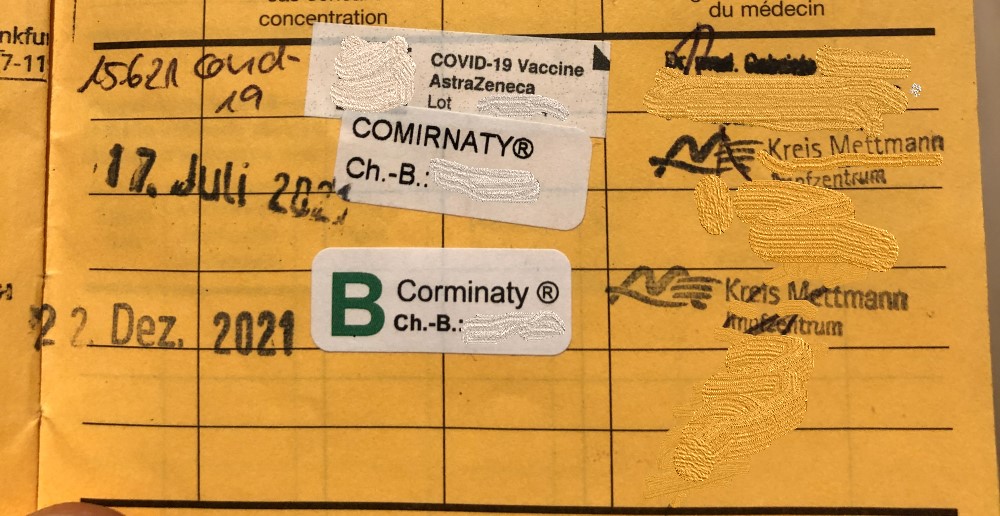 Nun hab ich den dritten Stempel im Pass. Dank jährlicher Grippe-Impfung ist der schon rappelvoll.