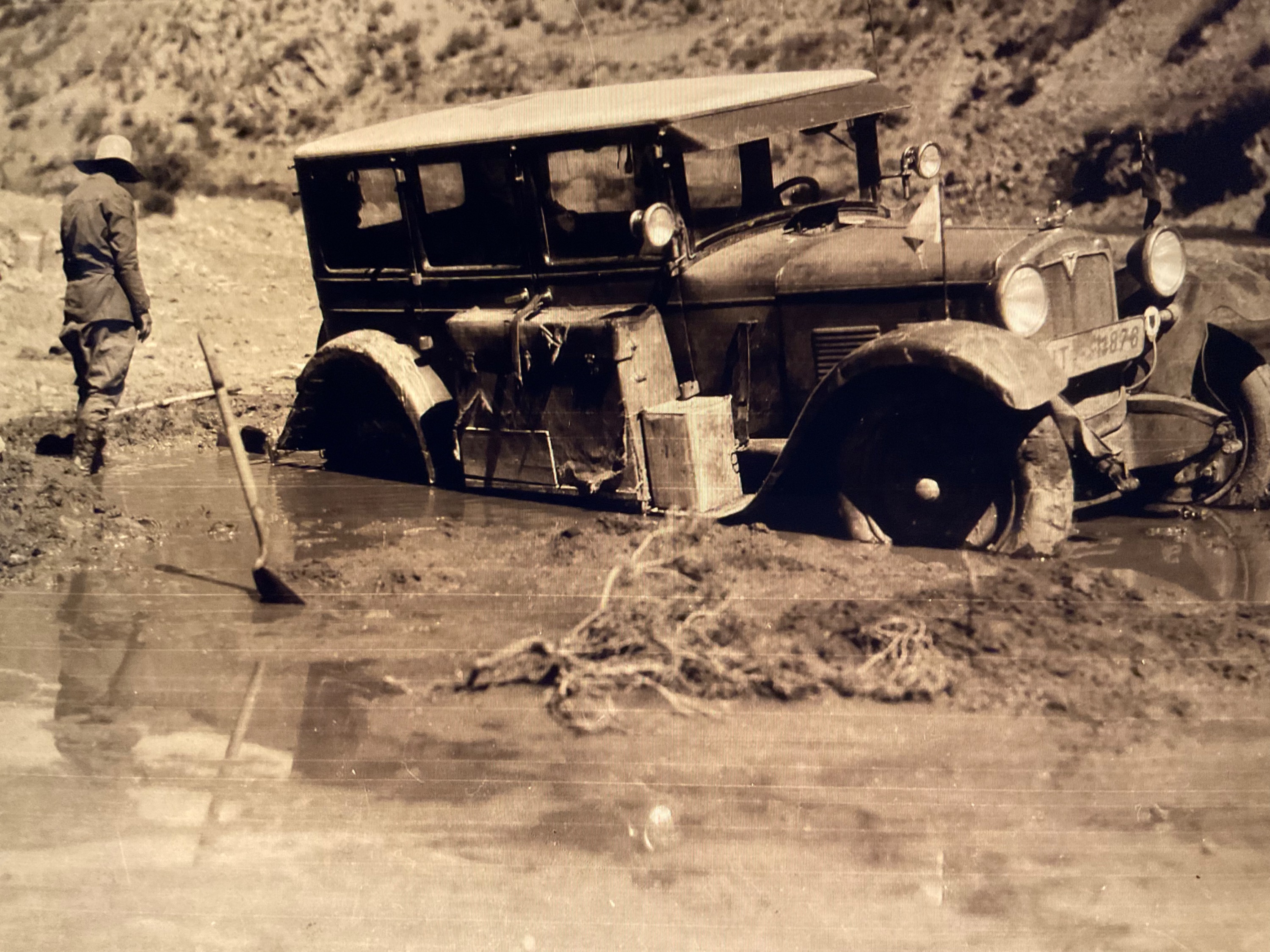 Auf den Weg von Peru nach Bolivien, zum wiederholten Male im Wasserloch stecken geblieben