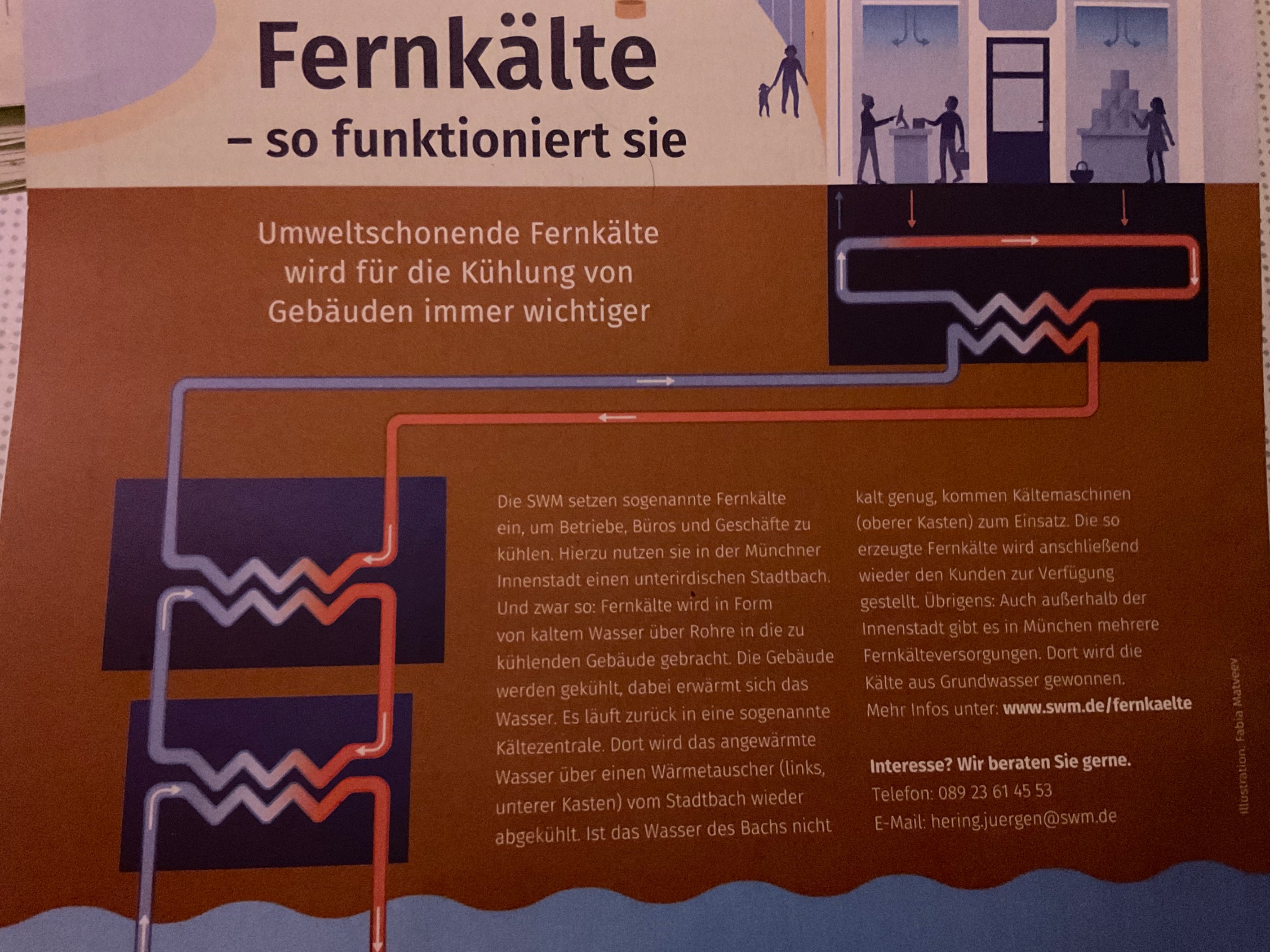 Als ich das Schild mit der Schrift „Fernkälte“ von den Stadtwerken München das erstmal sah, dachte ich an einen Aprilscherz.