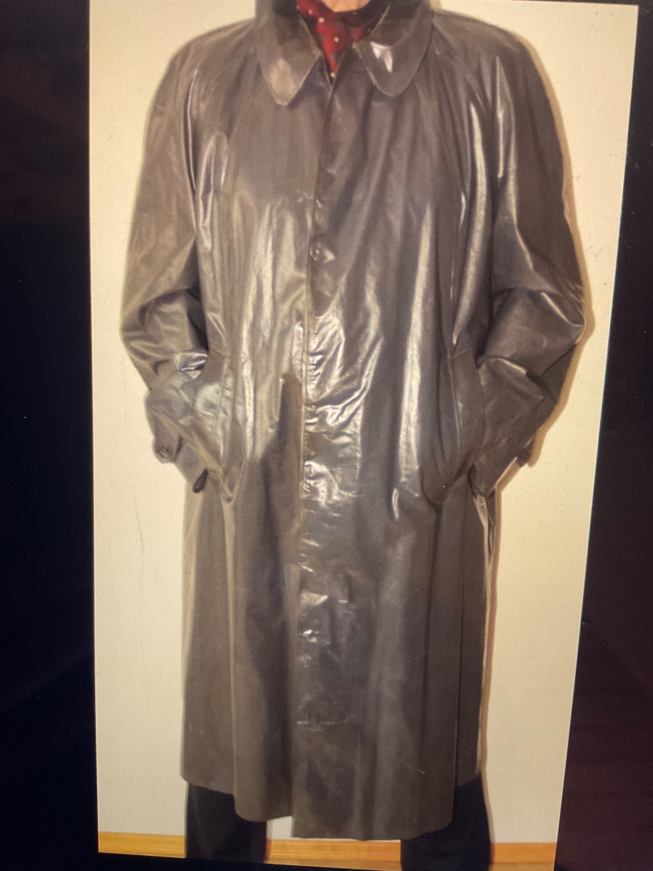 Es ist ein Baumwollstoff, gummiert, absolut wasserdicht, aber, man schwitzte darin wie „eine Sau“!