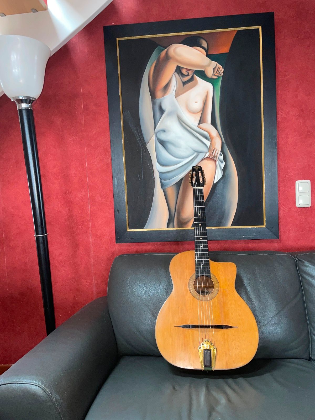 Diese Gitarre wurde in Frankreich bei Jérome Casanova in der Galerie Vero-Dodat erworben und kommt mit Beleg und Herkunftsnachweis.