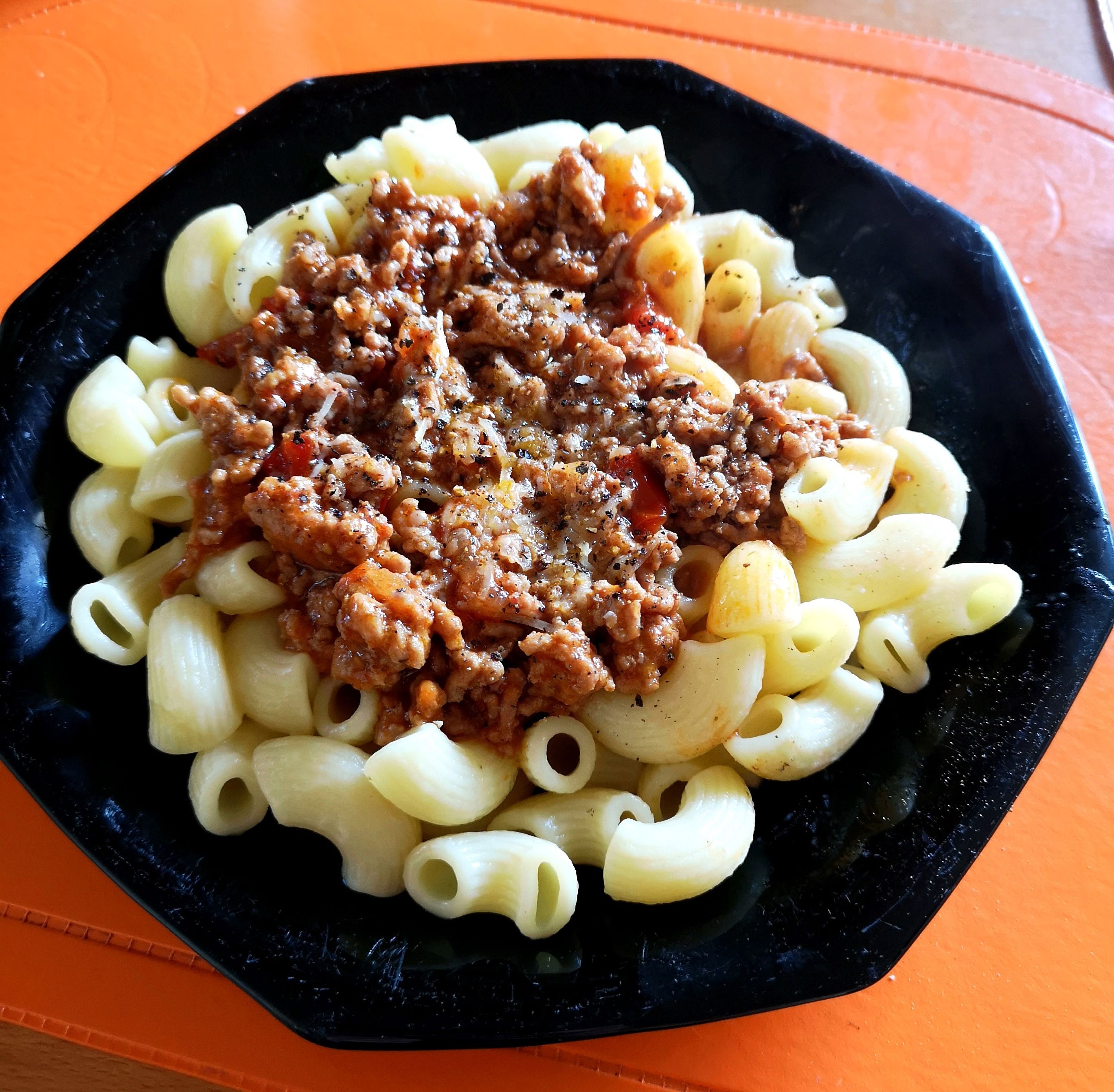 Heut gab's Hörnchen mit Bolognese-Sauce, selbergebrutzelt