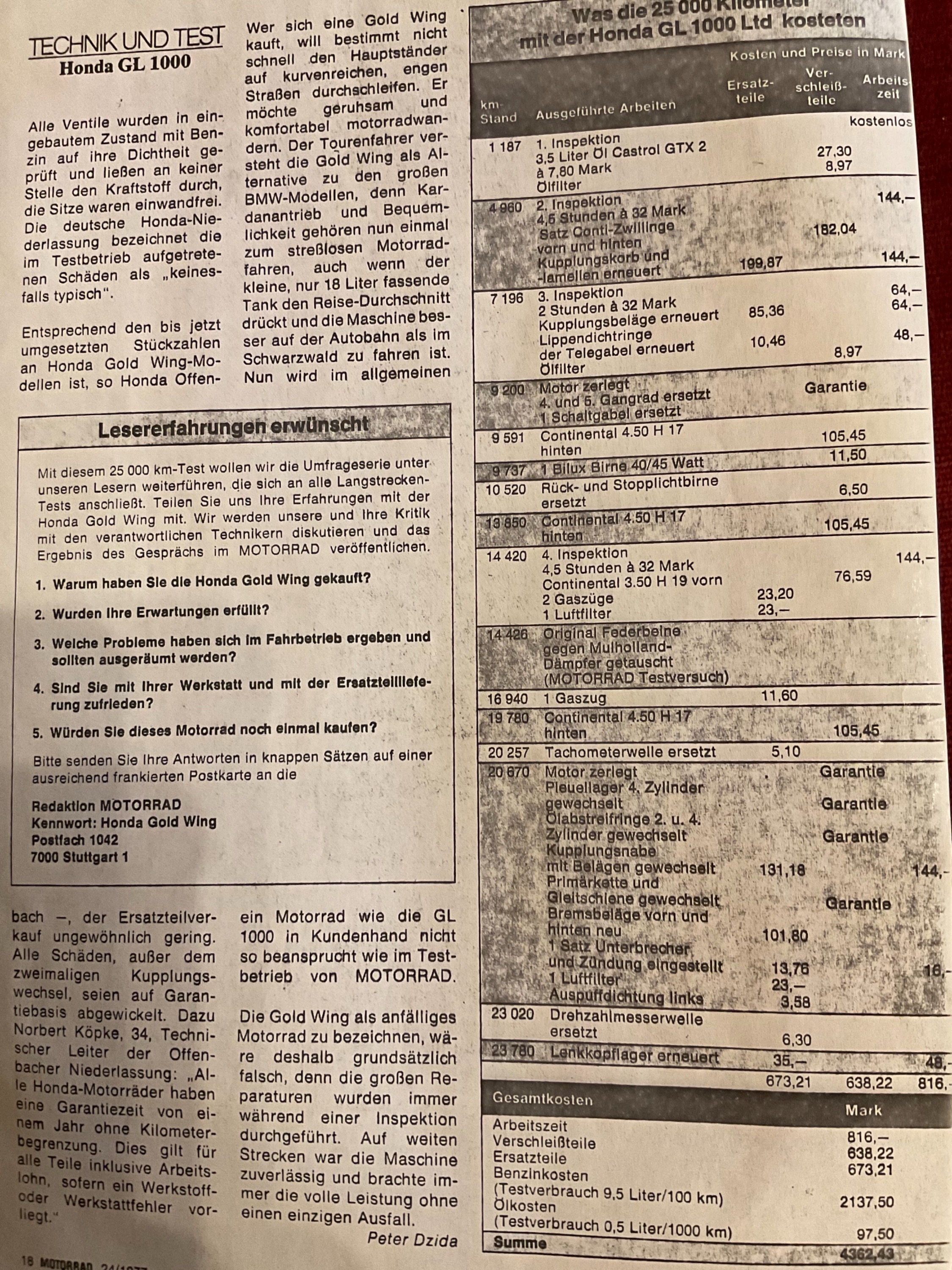 Wie aus den ganzen zu ersehen ist, genügend Gesprächsstoff zu den Fahreigenschaften der Gold Wing GL1000, und dies nicht ganz unbegründet!