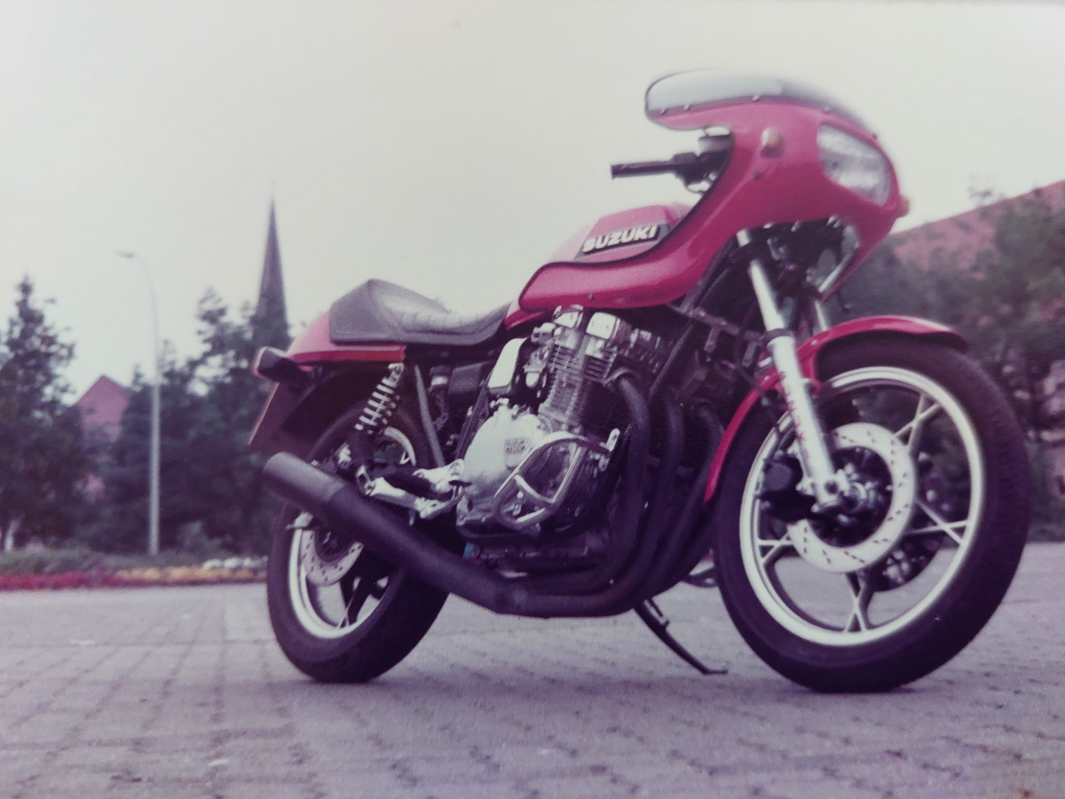 Suzuki GSX 750 mit ich glaube Habermann Halbschale und ausgeräumte Termignoni 4-1