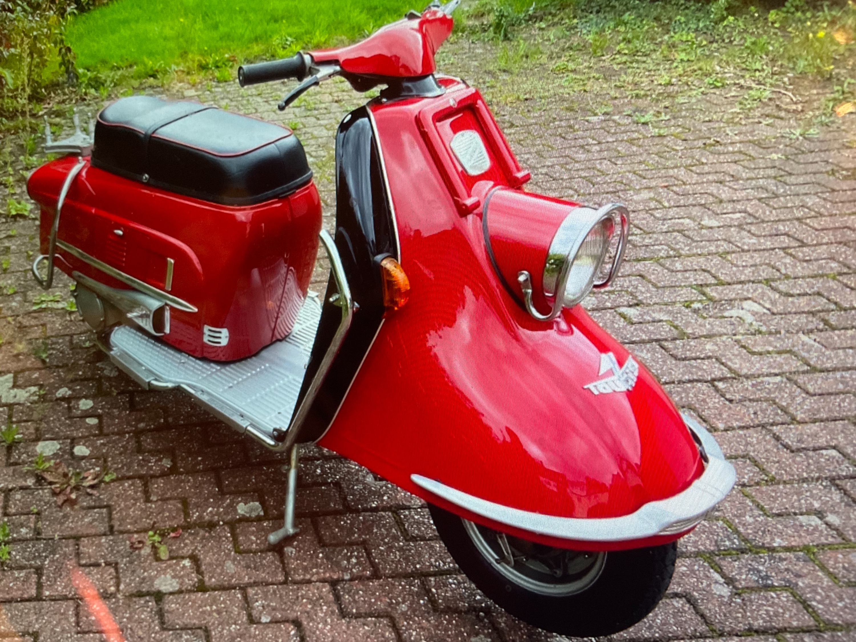 Das war meine erste, die Kreidler Florett Super, mit „Hebammendurchstieg“, 4 PS Das war dann das Nachfolgemodell 50TM K54 mit 5,3 PS Dann begann meine Rollerzeit.Schuld war das dauernd schlechte Wetter, und da war man wenigstens von unten trocken.Die NSU-Lambretta(ganz so dreckig war meine nicht) Sogar mit E-Anlasser Dann der Zündapp Roller (war meinen Fahrkünsten nicht gewachsen, ständiger Auspuffverlust, er ist fast über der Fahrbahn), dazu in kürze eine Story dazu Und das wäre mein Traumroller gewesen, die Zündapp Bella 10 PS 200ccm, 95 Spitze, 12“ Zoll Räder! Super Straßenlage, u.a. der großen Räder wegen, damals 60er Jahre, einer der stärksten und erfolgreichsten: von 1953-64 130 000 Stück! Halt, ich hab‘ ja noch einen absoluten „Traum“, der „Heinkel Tourist! 1-Zylinder 4Takter! 9,2 PS, 200 ccm, 95 km/h, Magura 4-Gang Schaltung, aber für mich damals zu teuer!