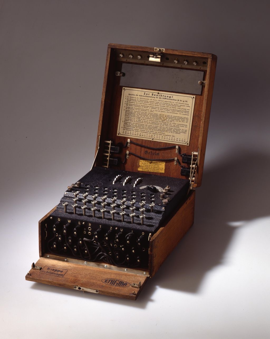 Hier nochmal eine Version der Enigma, bedeutet aus den griechischen Rätsel. Die Codierwalzen konnten ausgetauscht, ergänzt, und durch Steckverbindungen immer mehr erweitert werden. Und jetzt meine lieben Freunde haltet den Atem an, es gab 200 Trilliarden Verschlüsselungs-Möglichkeiten. Und auf diese Zahl setzten die Deutschen Kryptotechnker ihre ganze Hoffnung und Sicherheitsgarantie, der Code unknackbar!!