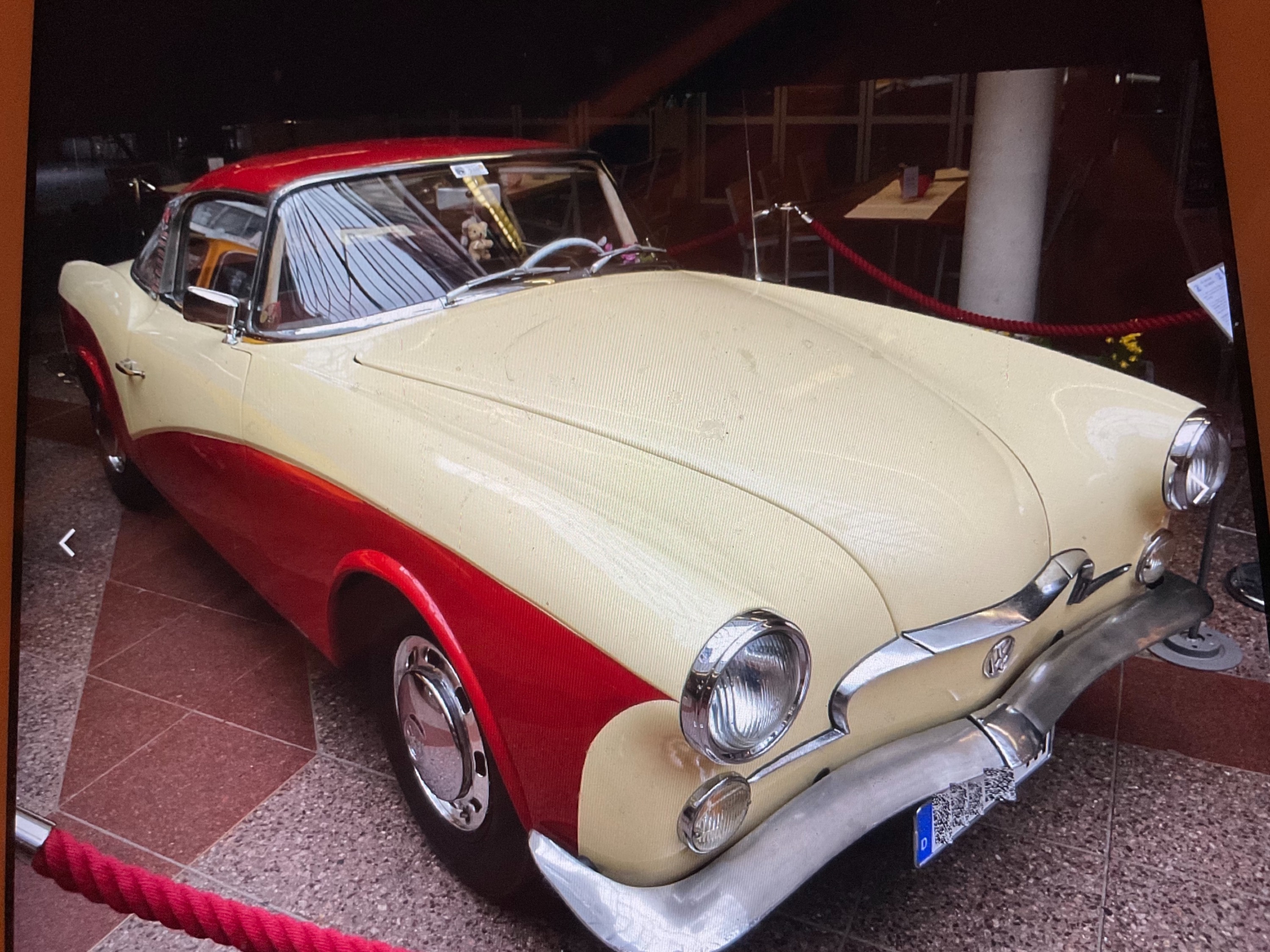 Wunderschön, oder? Sehr amerikanisch mit dieser Panoramascheibe und den Heckflossen. Ein wirklich schönes Auto, welches ich auch fahren würde. Gewöhnungsbedürftig ist eigentlich nur das Fehlen eines Kühlergrills. Aber das brauchte es ja nicht, da der luftgekühlte Motor im Heck saß.Das ROMETSCH „LAWRENCE“ Coupé!