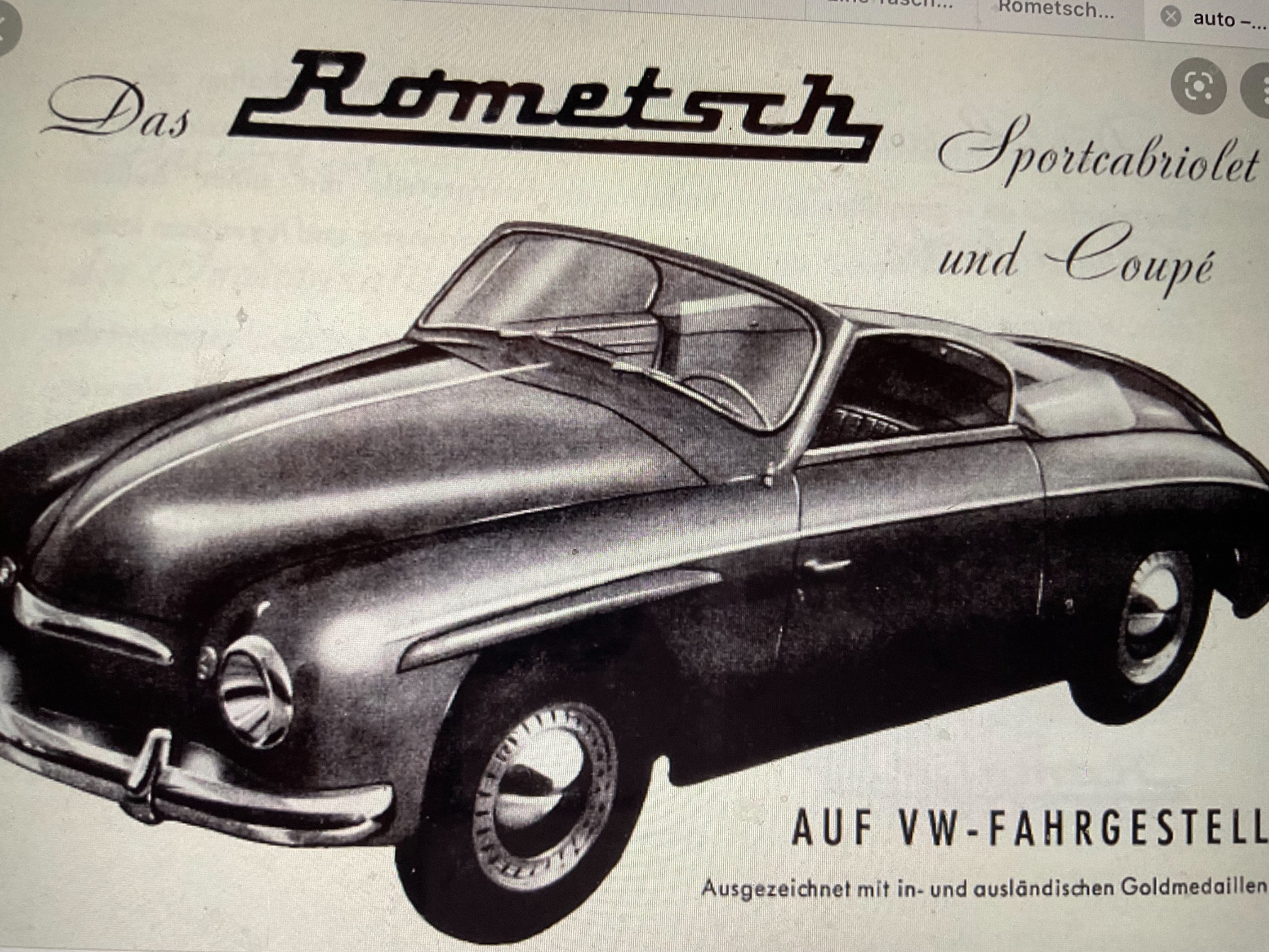 Ja, eine verblüffende Ähnlichkeit ist schon da! Aaaaaaber, es ist das Fahrgestell des Goliath GP 700, mit einen Karosserieaufbau von Rometsch-längerer Radstand als der Porsche und eine geschwungene Seitenlinie-dadurch gestreckter. Auf der IAA in Berlin 1951 als „Leckerbissen für Autofreunde“ gelobt. Allerdings das Interesse war wegen des hohen Preises-9700.-DM, 500 DM weniger als der Porsche, gering. Dazu trug auch der 26 PS Zweitakter-gegenüber den 40 PS Viertakter von Porsche - seinen Teil bei!