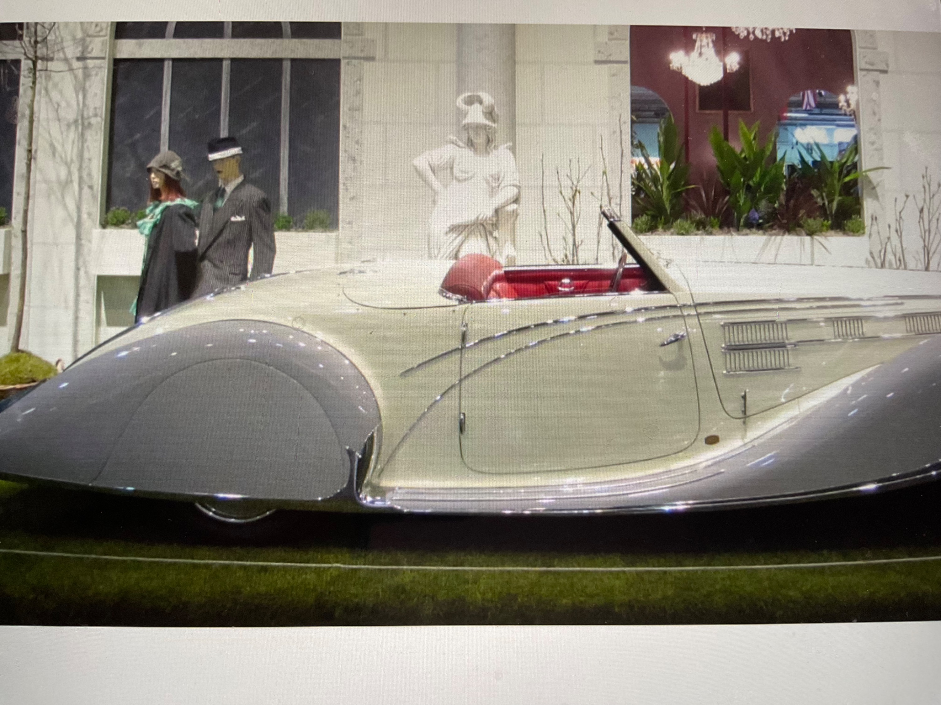 Einzelstück eines Bugatti 57C mit „unendlich“ gestalteten Fließheck vom 1939, von Gangloff in Colmar