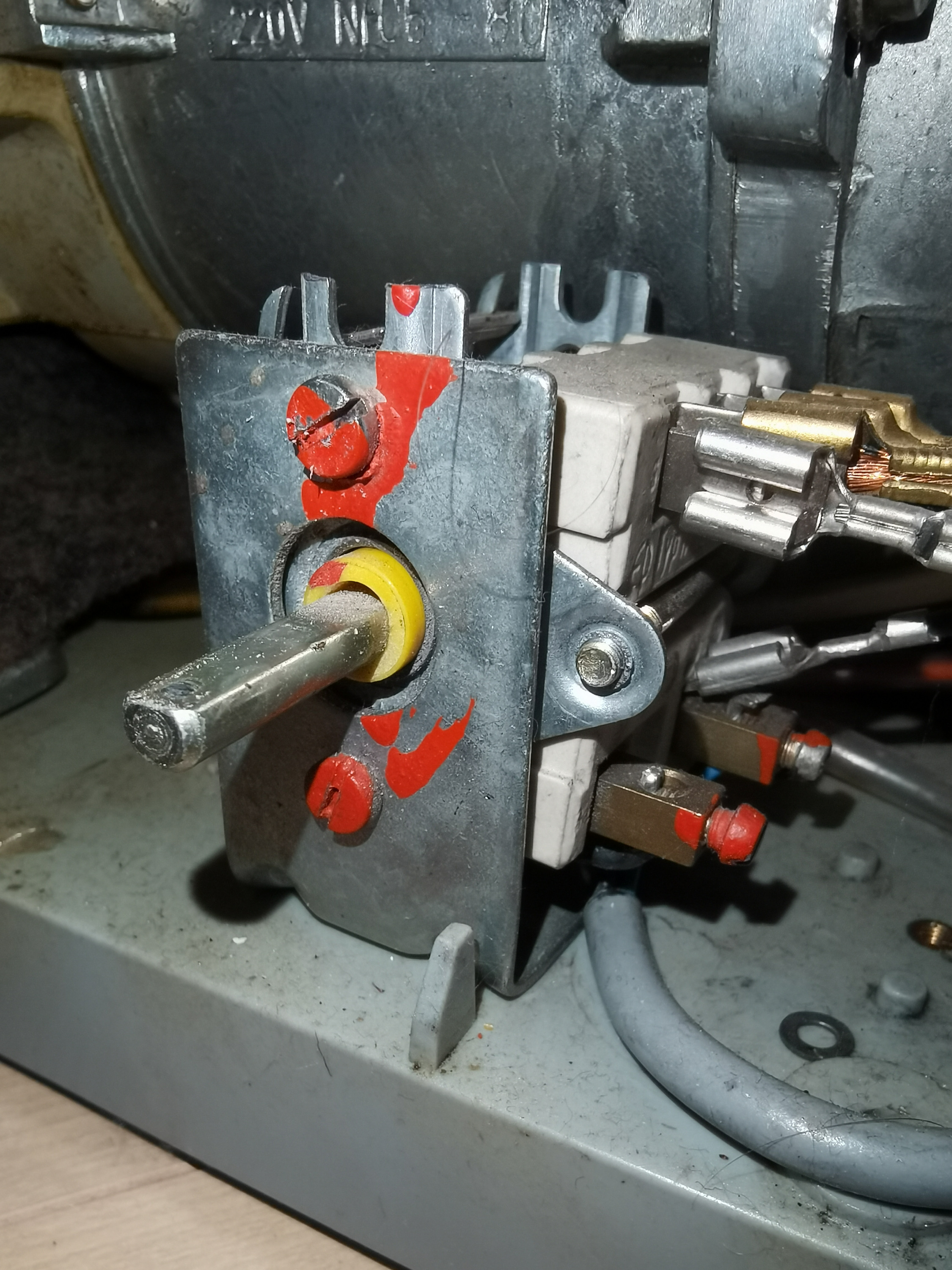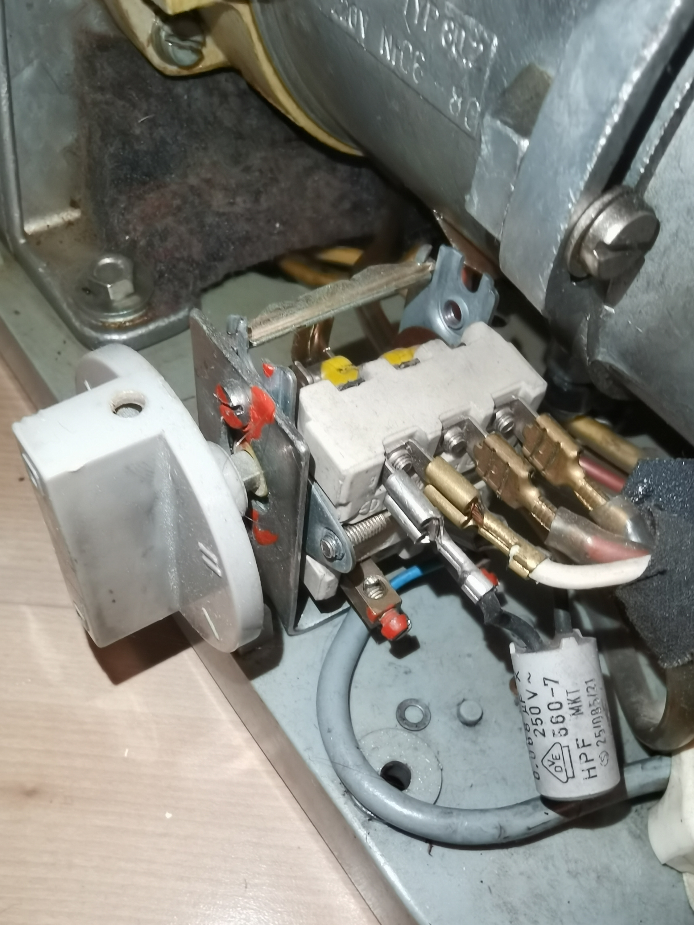 Der Umschalter ist defekt, weil die Schleifen nicht richtig schleifen. Diese sind mit Federspannung auf eine Art Trommel gezogen.