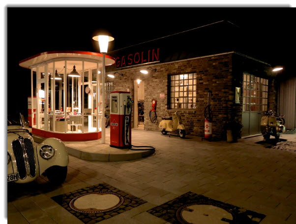Fritz Schmidt ist allerdings nicht nur Autor. Er realisiert auch andere Projekte. So hat er beispielsweise für das Mudeum Central Garage in Bad Homburg eine historische Tankstelle ausfindig gemacht und vor dem Museum originalgetreu wieder aufgebaut. Ich hab ja einige Jahre im benachbarten Friedrichsdorf gewohnt und konnte mich bei einigen Besuchen in der Central Garage nicht sattsehen an dieser wunderschön restaurierten Tankstelle
