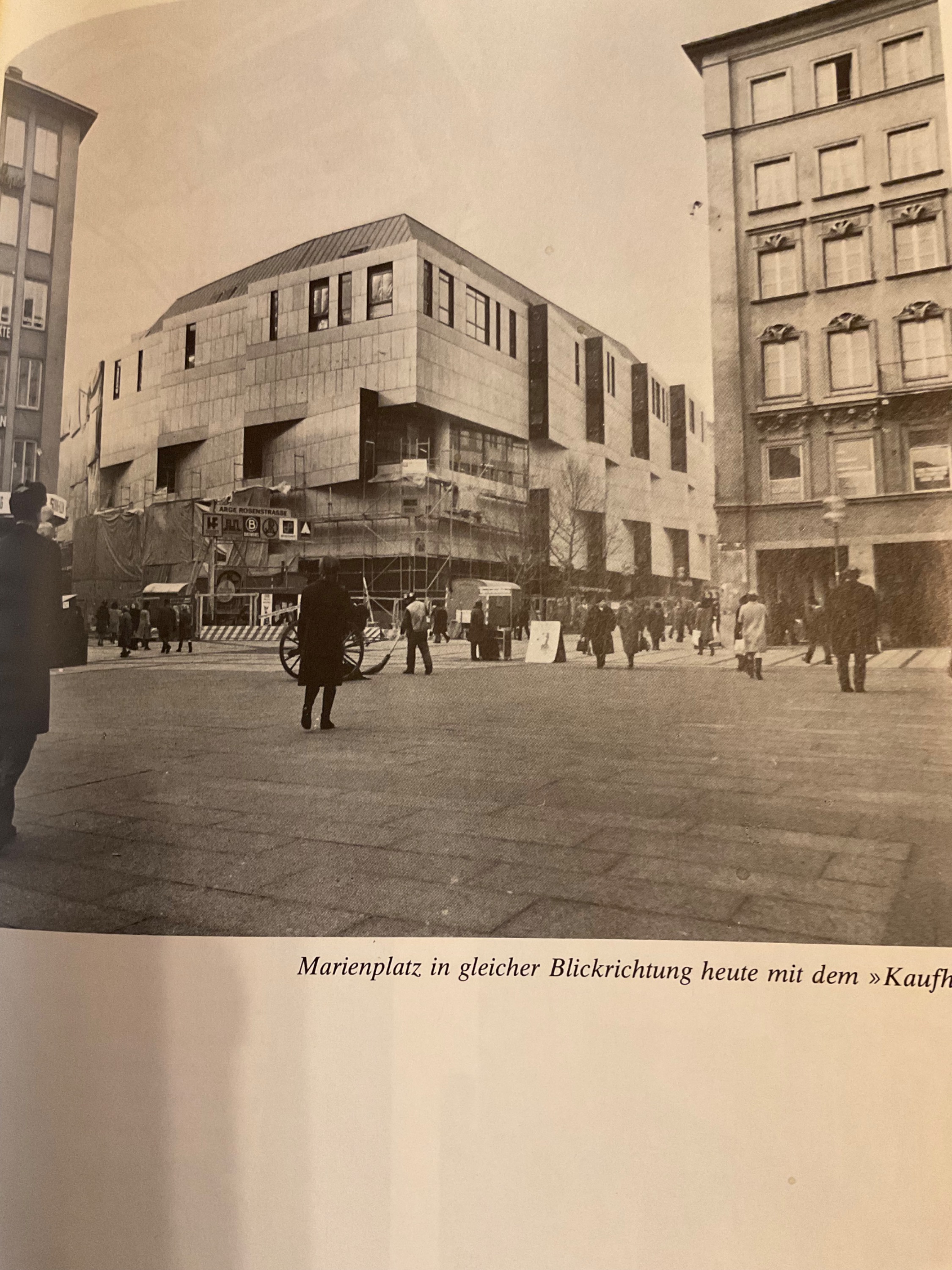 Münchens gute Stube, der Marienplatz vor 1945 und so schaut er jetzt aus! Gleiche Blickrichtung mit der neuen „Kaufhoffassade“