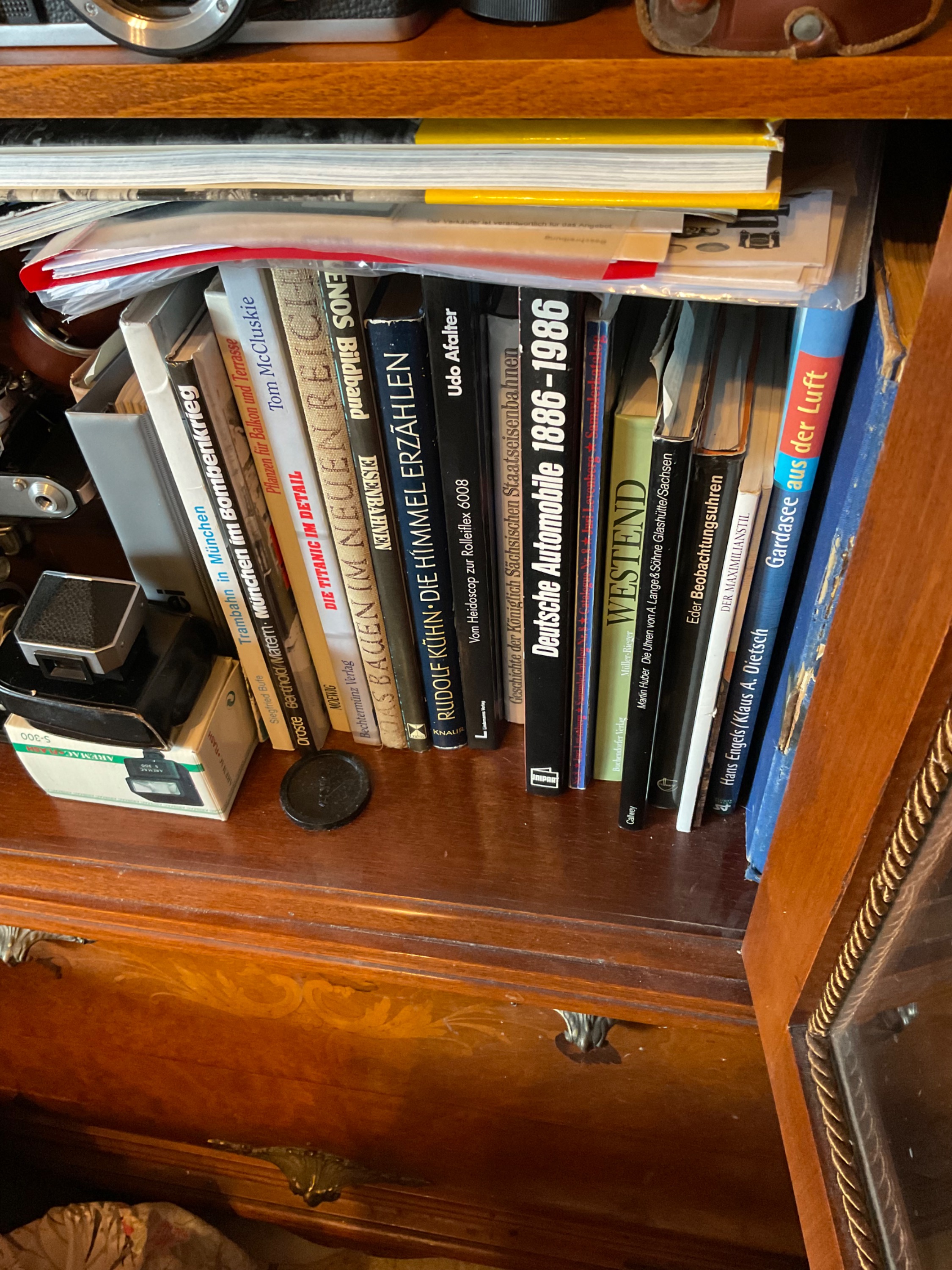 Das Problem ist bei mir dasselbe, nämlich der Platz. Überall etwas! Darum ist Suchen die Hauptdisziplin! Hier in einen Schrank der Fotosammlung ein Teil reingezwängt!