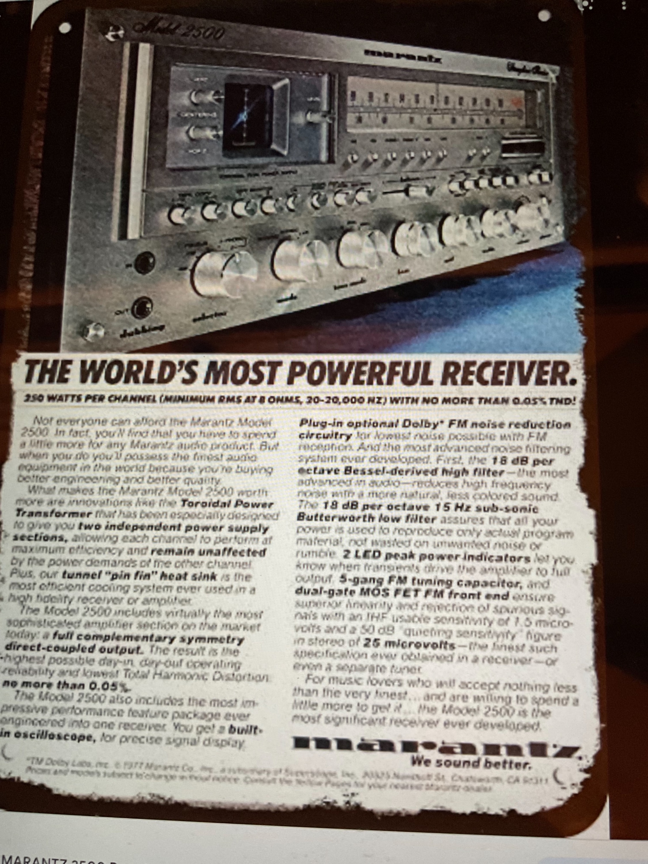 Der Marantz 2500er Receiver,aus einer Zeit, damals in den 70ern, als nichts groß genug und voller Power sein konnte, genau wie bei den Muscle-Cars. Deshalb ergänzen sich beide Genres auch glänzend, wie ich finde.