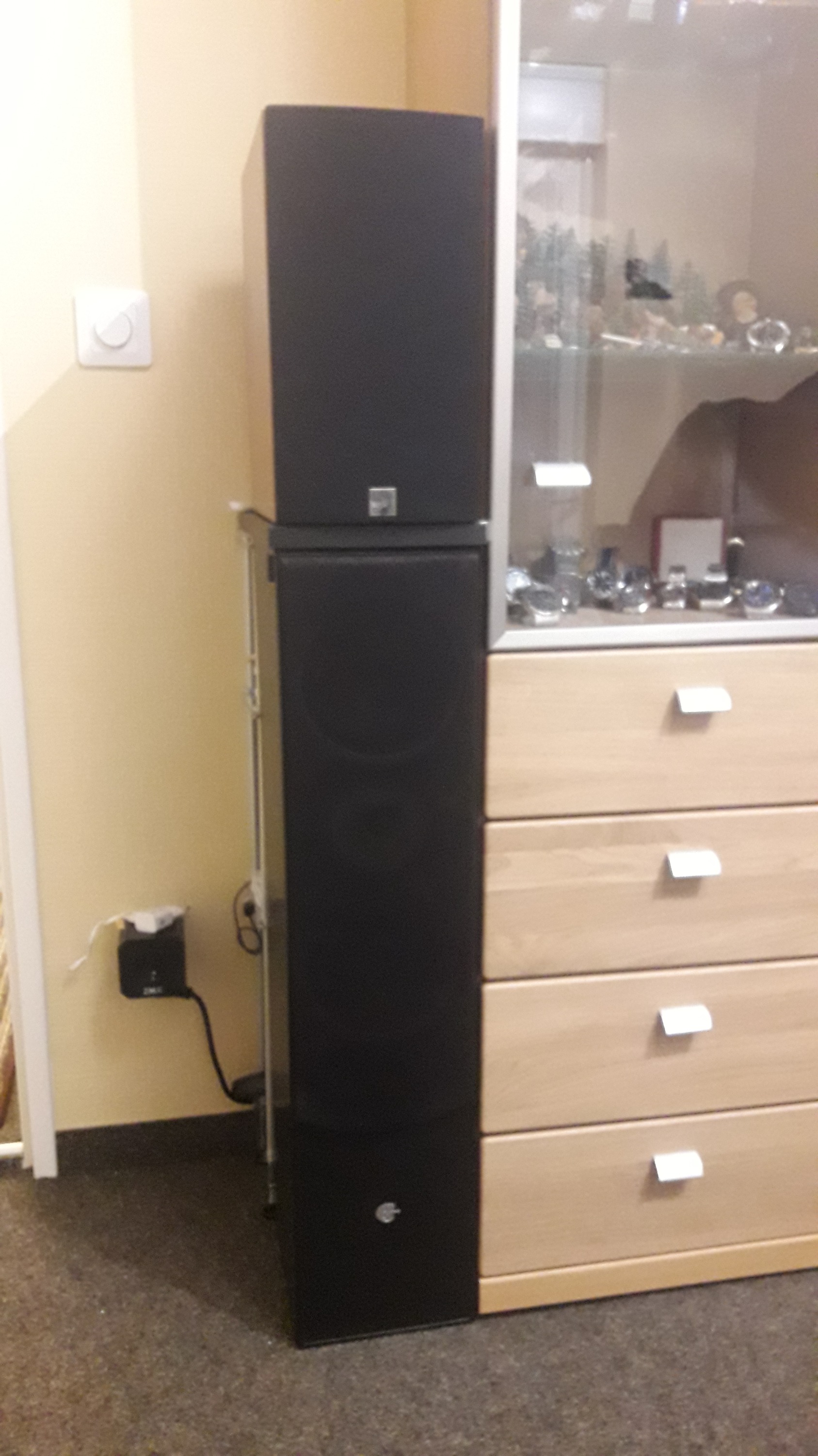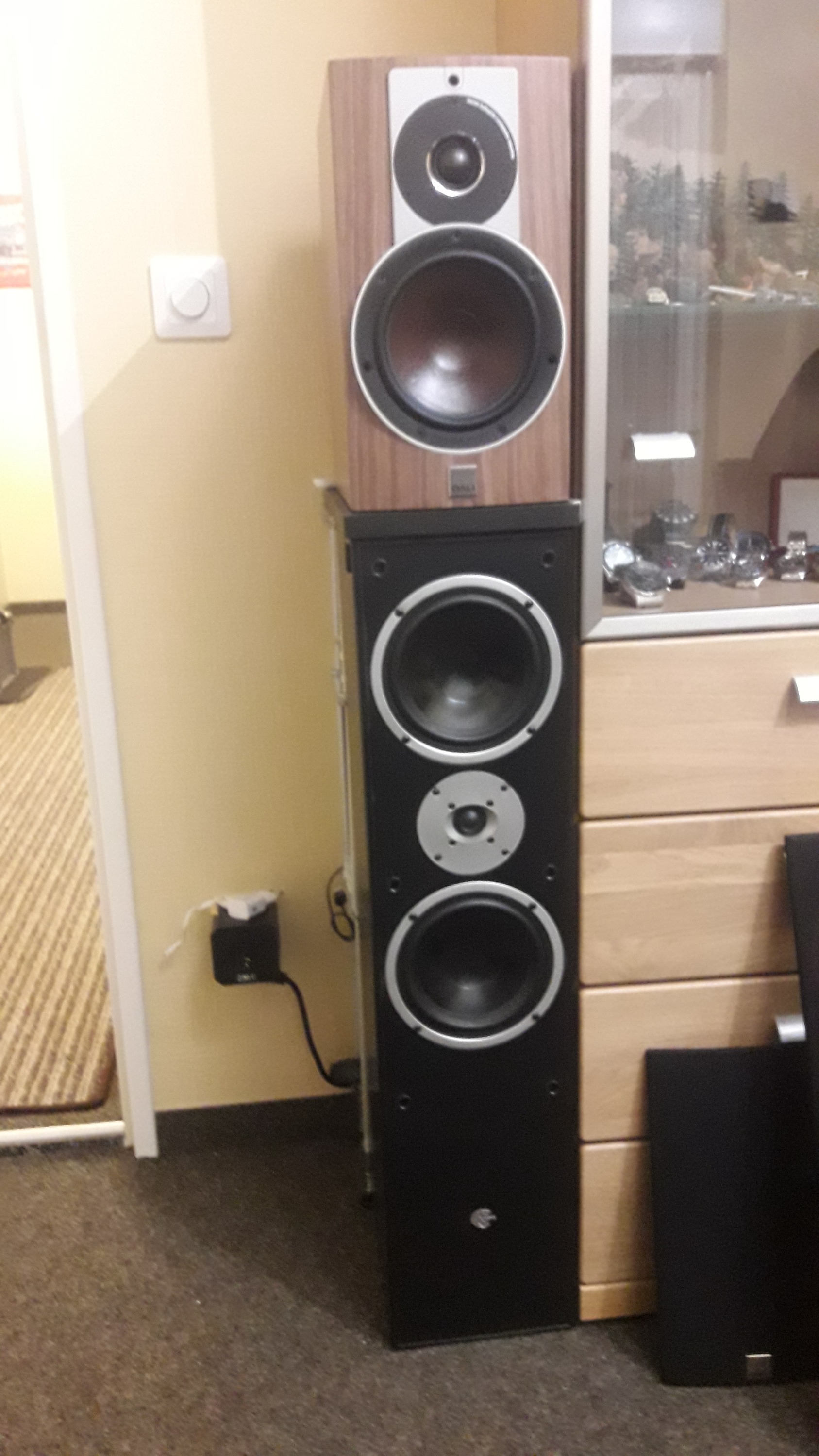 darunter technisch gepimpte alte "CAT", die waren mal Projektarbeit eines Freundes, da ist im Prinzip nur das Gehäuse im Originalzustand, sogar das wurde innen modifiziert, trotzdem waren es akustisch keine Highlights, leider! Die dienen momentan nur als Sockel für die DALI . [attachment=11558]20221007_213024.jpg