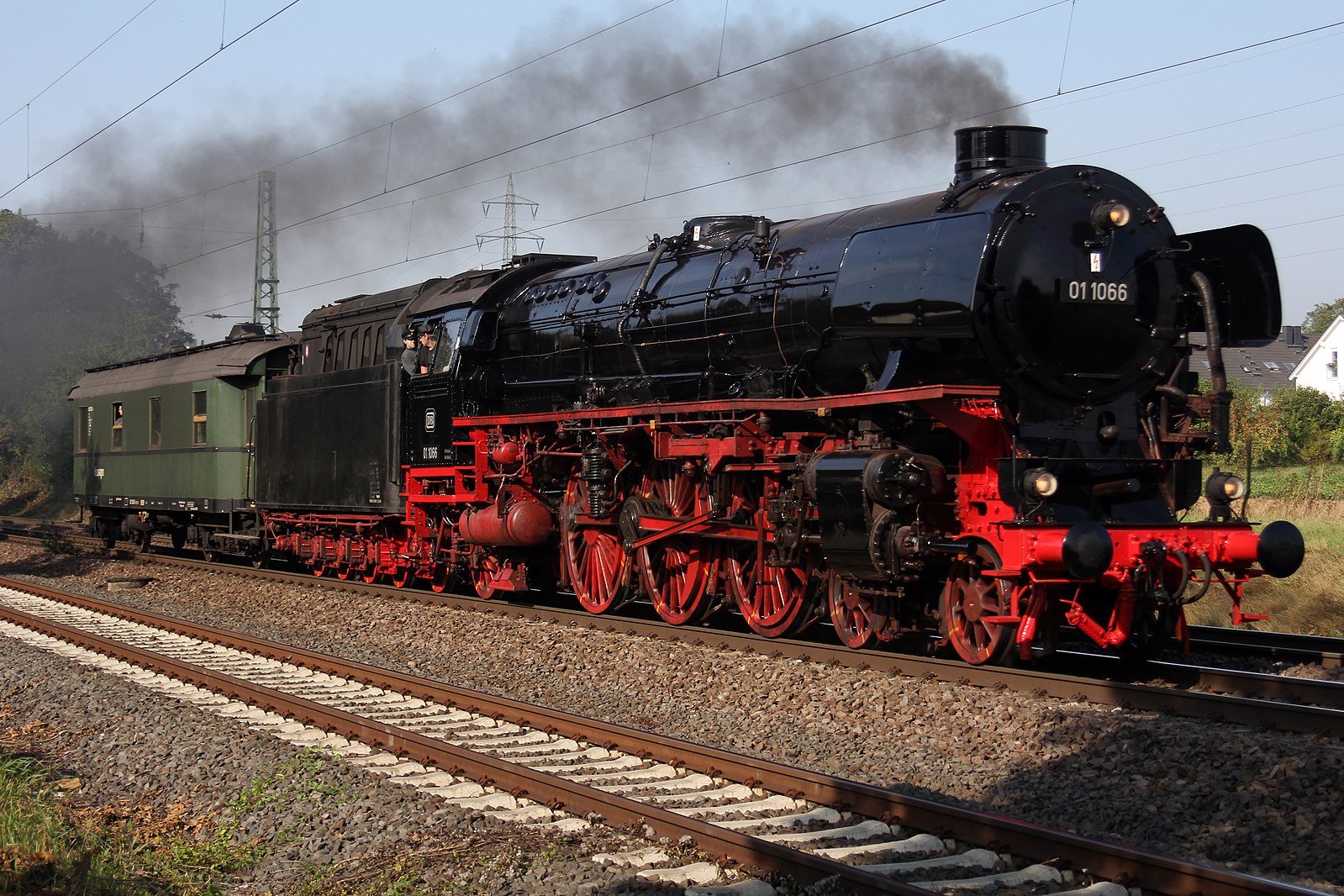 Übrigens war sie das Aushängeschild und Prestigeobjekt der Deutschen Reichsbahn. Baujahr 1940, 2470 PS, Länge über 24 m, 112 Tonnen, Treibraddurchmesser 2000 mm, die 3 Zylinder Schnellzuglokomotive, Baureihe 01 1066, die größte ihrer Art, die je in Deutschland gefertigt-damals „Deutsches Reich“-heute BRD! Und das Interessante, gebaut im zweiten Kriegsjahr, man hatte ja Rohstoffe ohne Ende!!