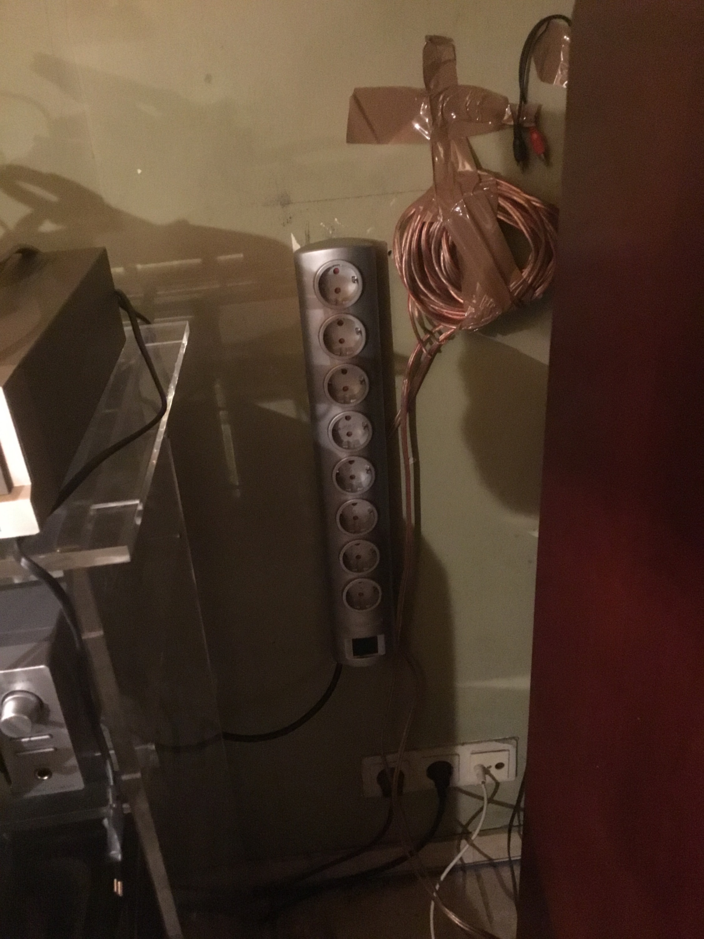 Zum Musik-Genuß moechte ich eben auch eine angemessene Illumination, die der akustischen Stimmung entspricht, also eine nahezu raumumlaufende Boden-Sockelkantenbeleuchtung, mit Farbwechsel, usw, da war ein schnoeder Lichtschalter und ein raum-mittig angelegter Stromauslaß an der Decke, so wie eben für eine 1960er Wohnung Standard, für mich leider nicht unbedingt die erste Wahl!
