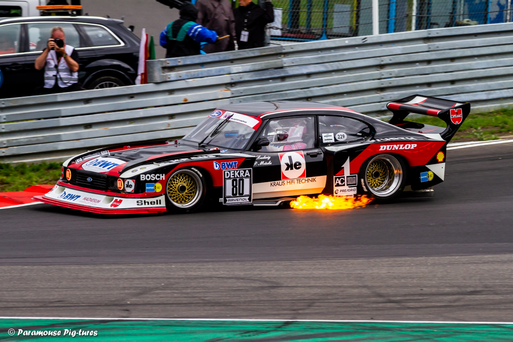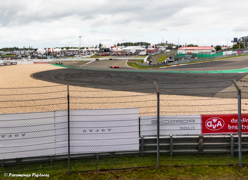 Die Mercedes-Tribüne ist einer meiner Lieblingsplätze. Die Autos sind dort verhältnismäßig langsam wegen der scharfen Kehre und man kann lange einfach draufhalten im Serienbildmodus. Dann gelingen auch oft Schnappschüsse wie dieser