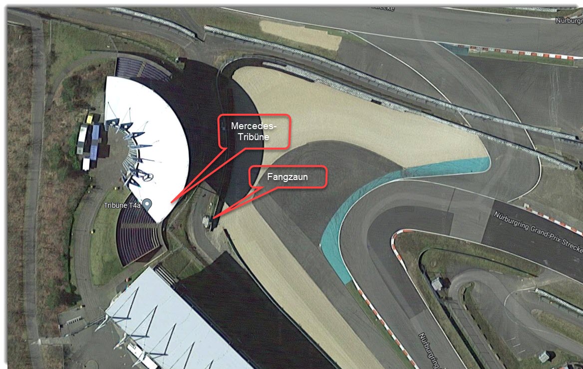 So sieht der Blick von der Mercedes-Tribüne auf die Strecke übrigens ohne Telezoom aus