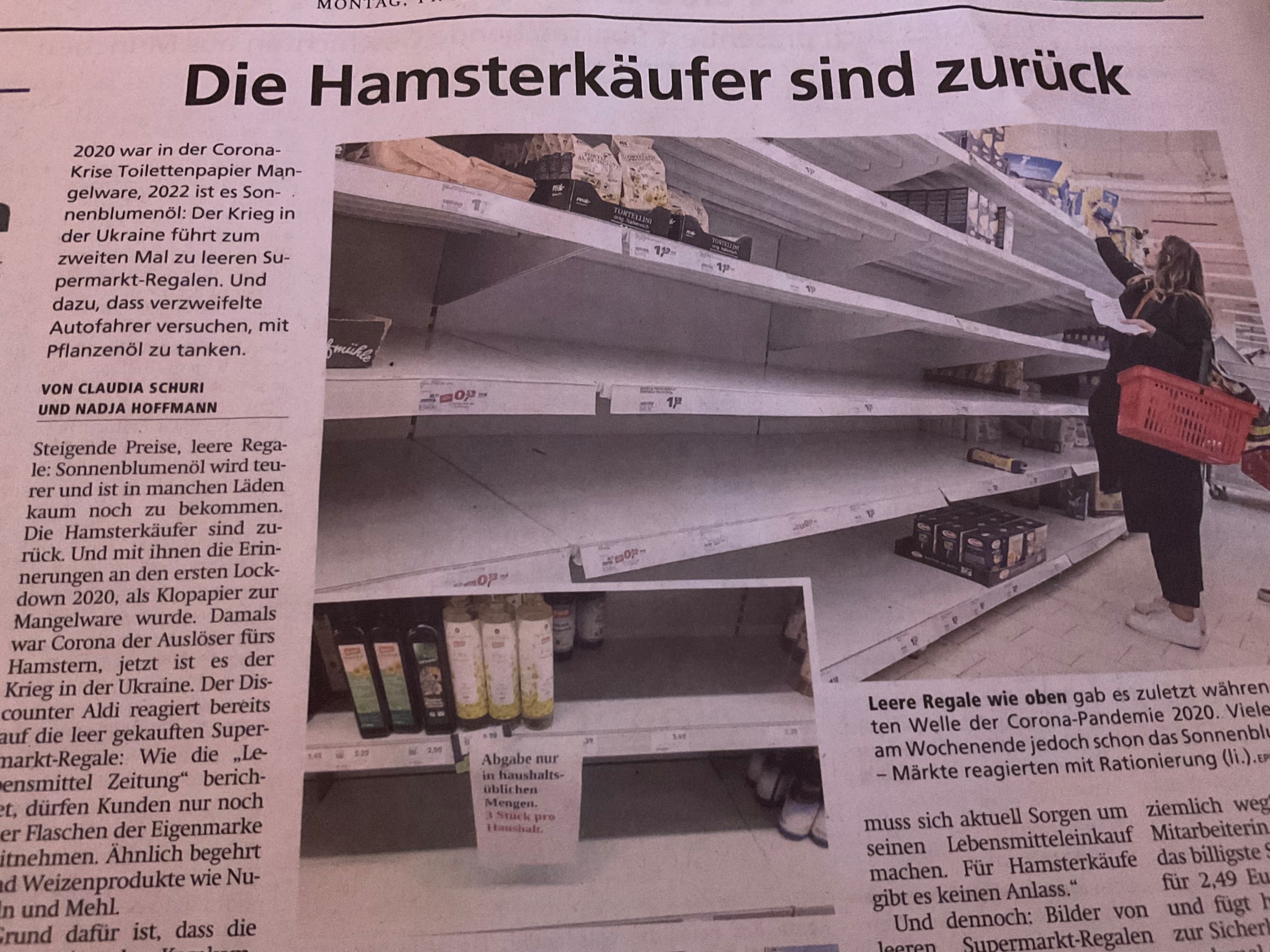 15 März 2022 18:31 - 15 März 2022 18:33Jetzt ne Packung mehr im Keller zu haben schadet nicht! Obwohl ich Hamstern nicht gutheisse.