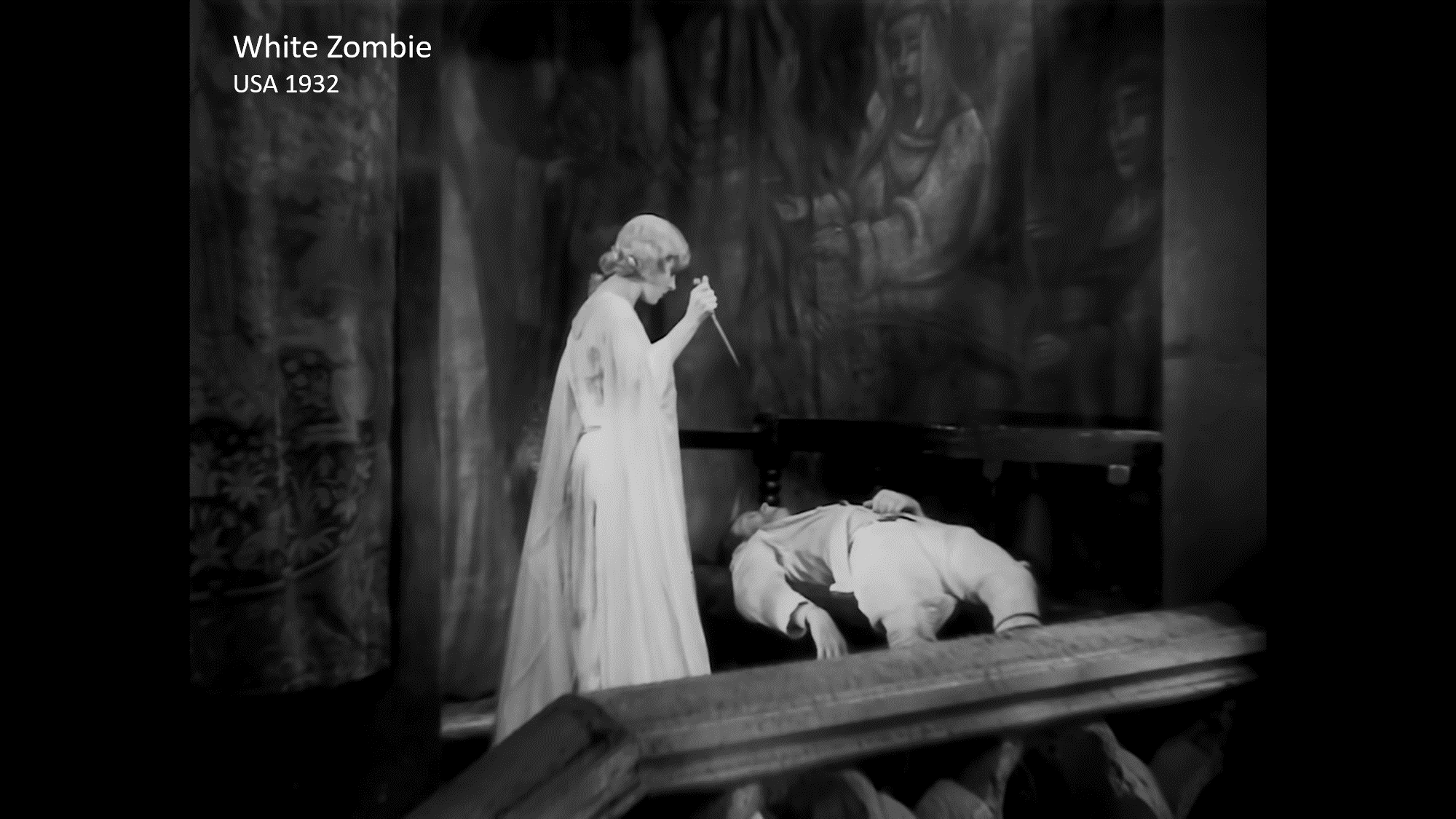 Am Höhepunkt der Handlung wird die willenlose Zombie-Madeleine von Legendres hypnotischem Willen gezwungen, einen Dolch zu nehmen und ihren bewusstlos daliegenden Bräutigam damit zu erstechen. Doch im letzten Moment zeigt sie einen Funken Erkenntnis und eigenen Willen und lässt den Dolch sinken.