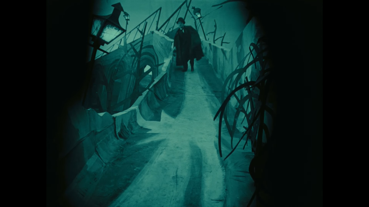 Szene aus "Das Cabinet des Dr. Caligari" D (1919), Schwarzweiss grün viragiert
