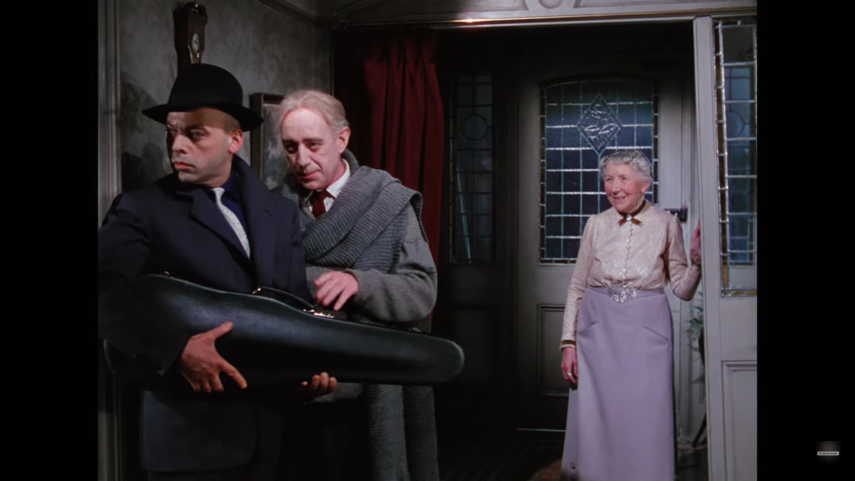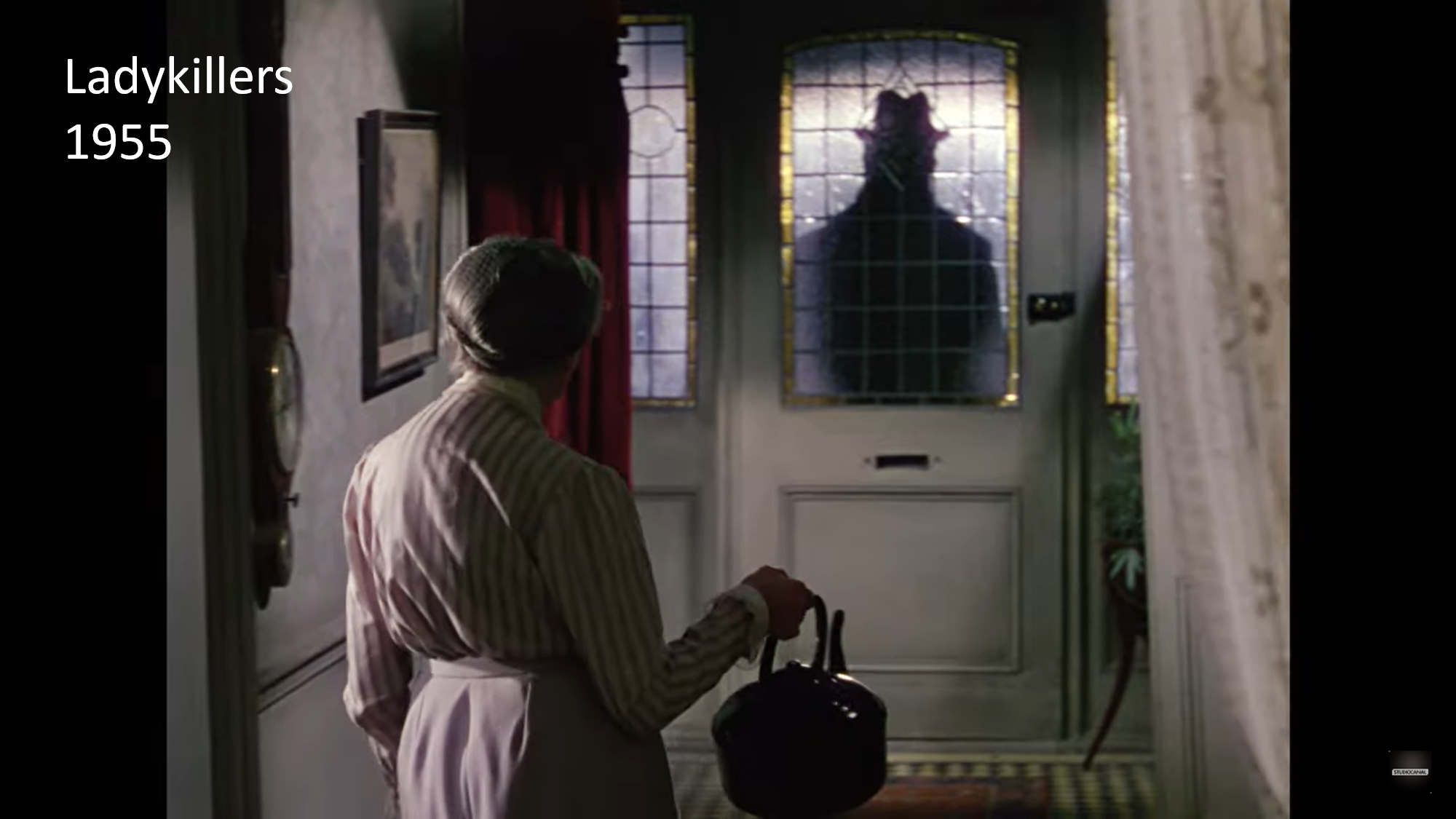 Der unheimliche erste Auftritt des zwielichtigen Prof. Marcus (Alec Guiness) ist eine Parodie einer Szene aus dem frühen Stummfilm "The Lodger / Der Mieter" (1927) von Alfred Hitchcock, wo ein unheimlicher Untermieter in ein Haus einzieht, der Jack the Ripper sein könnte.