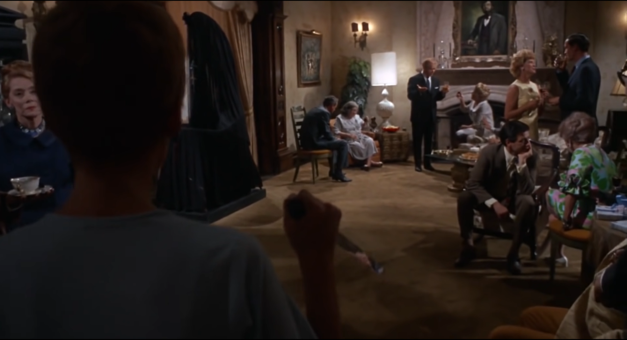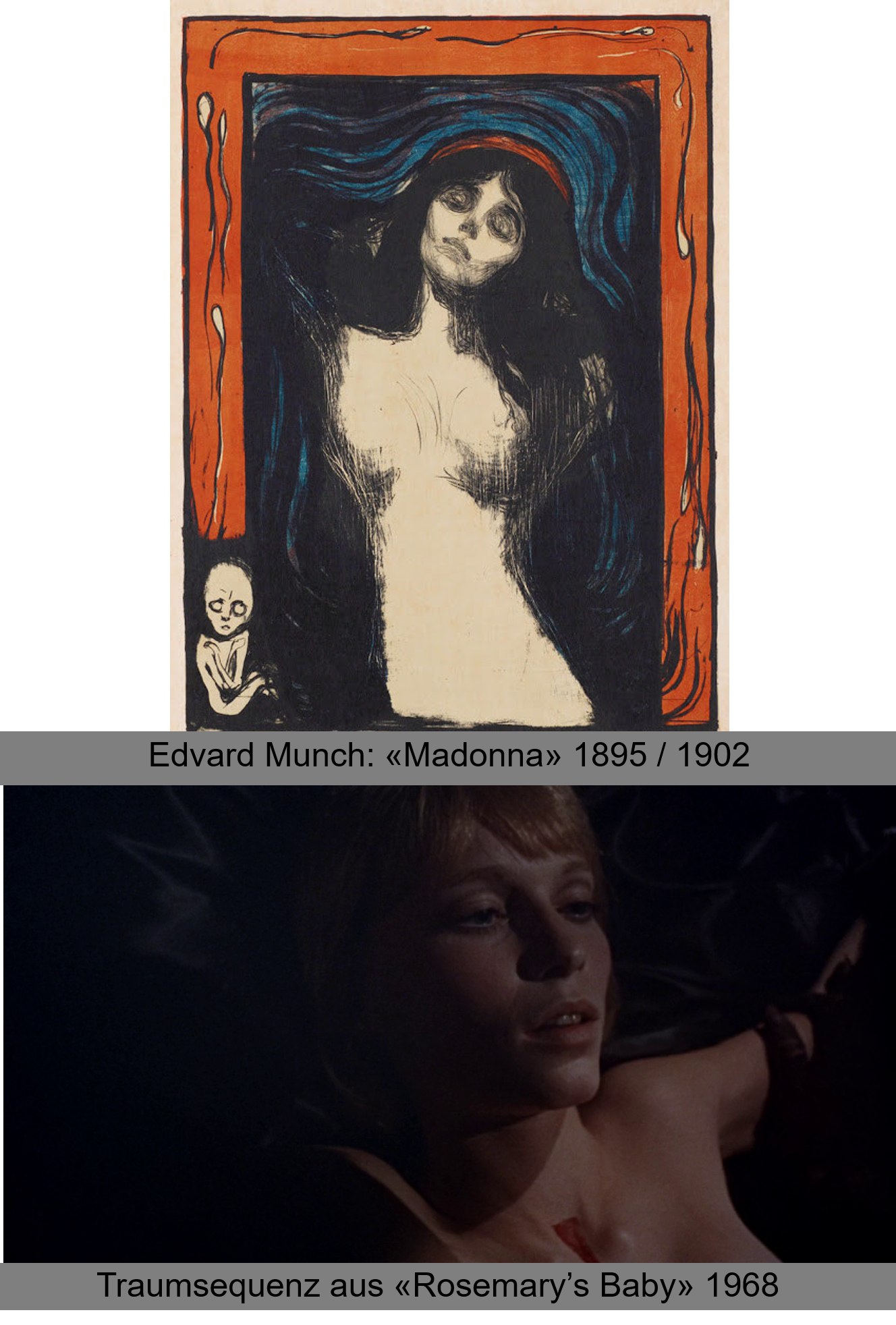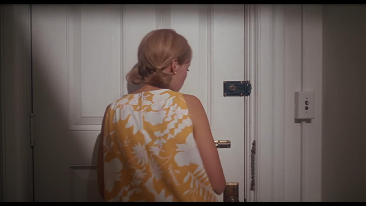Sie nimmt aus der Küche ein grosses Messer und geht durch den Wandschrank, der beide Wohnungen trennt, hinüber zu den Castevets (eine ikonische Szene!).