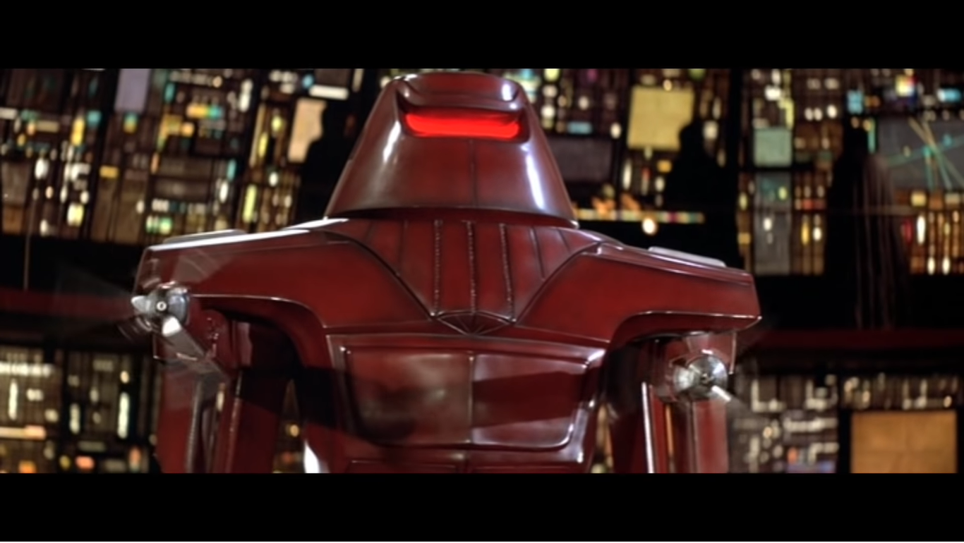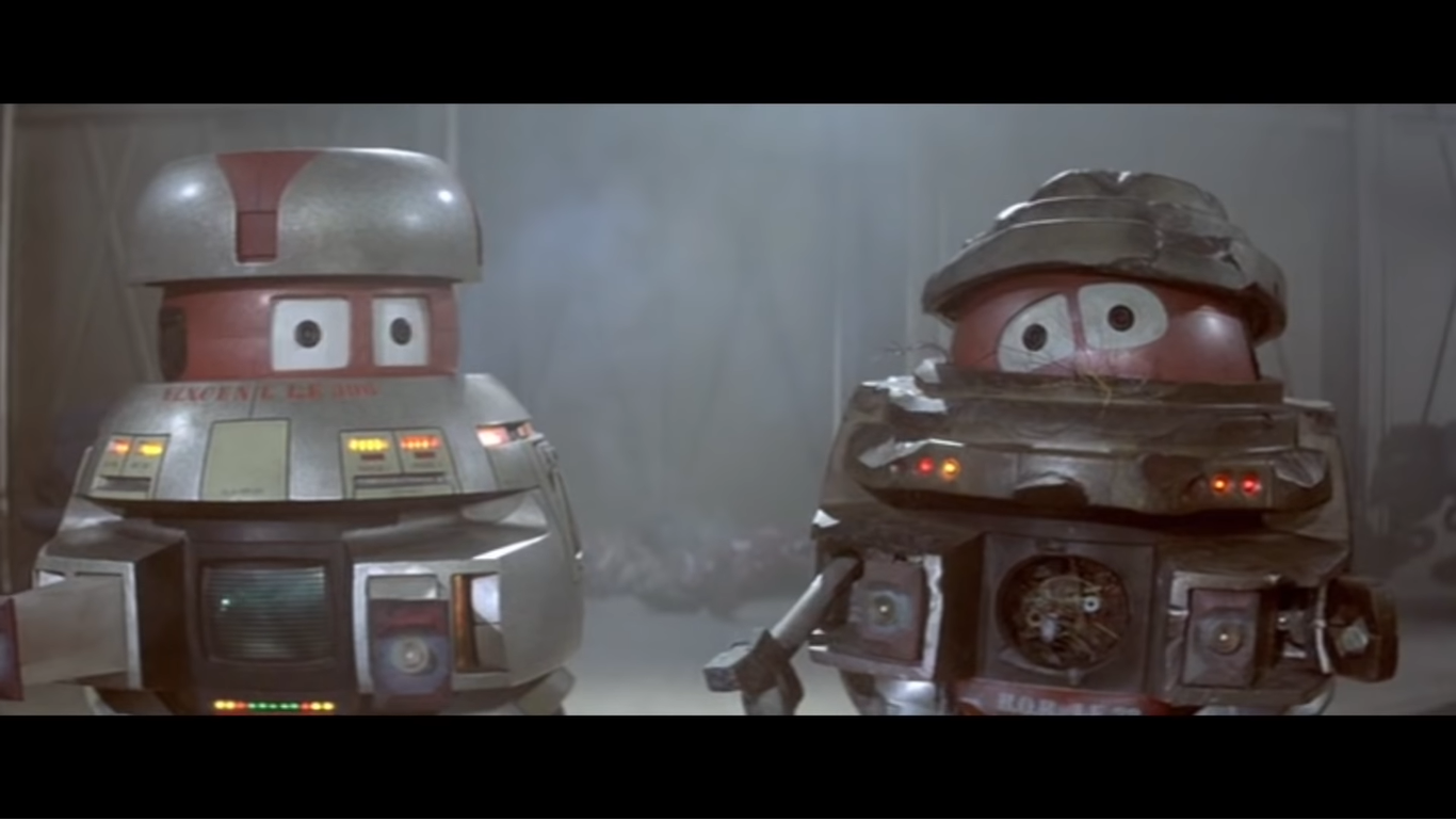 Daraus hätte man einen Bombenfilm machen können, aber leider muss man als Zuschauer immer wieder den Kopf schütteln. Da gibt es zum Beispiel zwei kindisch-doofe Kleinroboter namens Vincent und Bob, die aussehen wie Aluminium-Bierfässer mit Augen und ständig unglaublichen Stuss zum Besten geben, der wohl witzig sein sollte. Wie der böse Roboter Maximilian schweben sie durch den Raum, sind aber sonst weitgehend unbeweglich. Noch dazu sieht man in einigen Szenen deutlich die Fäden, an denen sie aufgehängt sind. Das hätte selbst die Augsburger Puppenkiste besser hinbekommen. Die Pseudo-Stormtrooper sind ebenfalls total überflüssig und lächerliche Plagiate. Hätte man den ganzen Roboterkram weggelassen und sich ganz auf Reinhard und die Spiegelgesicht-Androiden konzentriert, wäre es ein grosser Gewinn für den Film gewesen.