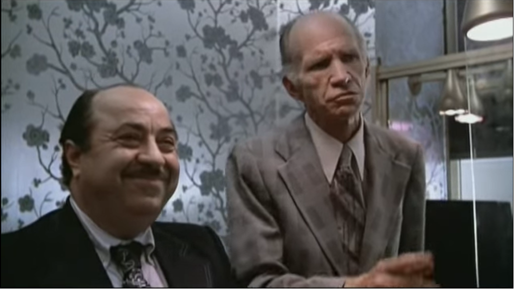 Die beiden Verkäufer in dem kleinen Juweliersgeschäft, in das Szell geht, sind wiederum prima besetzt, der kleine Dicke, der vor verbindlicher Verkäuferfreundlichkeit strahlt und der schroffe und skeptische lange Dürre, der den Satz spricht, den Szell am meisten fürchtet: "I know you!" Eine verblasst auf seinen Unterarm tätowierte Nummer, die man sieht (subjektive Kamera, Szells Perspektive), weist ihn als ehemaligen KZ-Häftling aus.