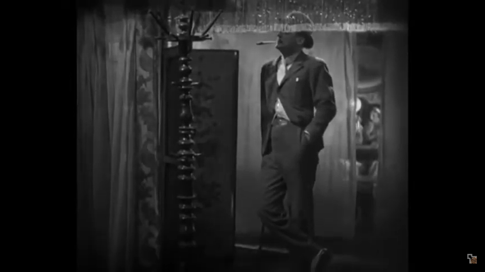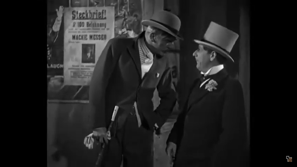 Dieser Film ist ein Paradebeispiel für ein solches Intro. Der Anfang des Films (0:00 - 3:40 min) ist eine Nachtszene mit Darstellung eines Mordes und das ist reiner Expressionismus. Die Sequenz ist stumm und mit einer dramatischen Musik unterlegt, es gibt nur dann und wann die Zugabe einzelner Geräusche (Klopfen an die Busscheibe, aufspringendes Messer, durchfahrender Zug etc.). Die Inszenierung und Beleuchtung (Beleuchtung einzelner Stellen mit hartem Licht, grosse schwarze Schattenflächen) könnte aus einem expressionistischen Film der 20er stammen. Und Fröbe, der pantomimisch geschult war (er arbeitete in der Jugend zeitweise als Zirkusclown), spielt das auch so, mit maximal gesteigerter Körpersprache und Mimik.