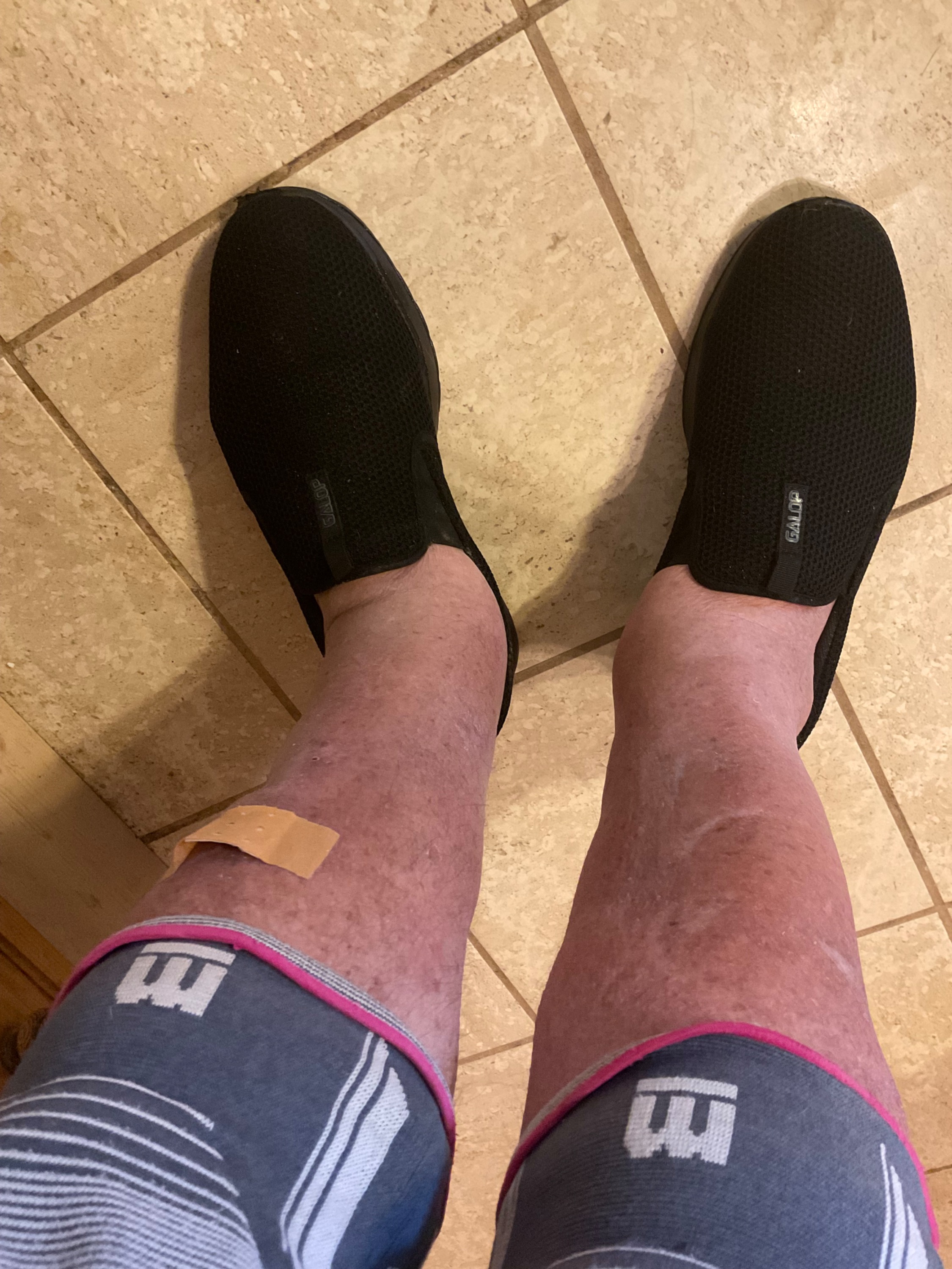 Und wenn sie mich sehen, stoßen sie einen Entsetzensschrei aus! Ja, sagen Sie, ist Ihnen nicht zu kalt? (Nur über die Kniegelenke habe ich meine Bandagen an!)