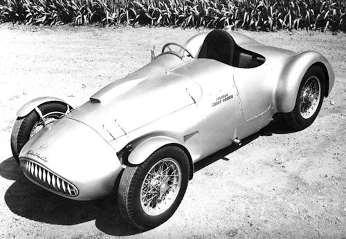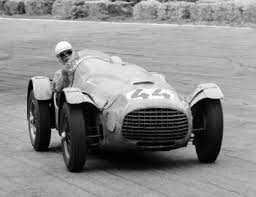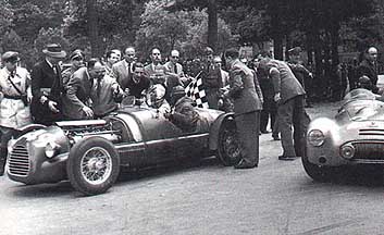 Sein Fahrzeug der Cisitalia 204 A von Carlo Abarth, 4-Zylindermotor vom Fiat 1100, 510 kg schwer, Speedlimit 190 km/h