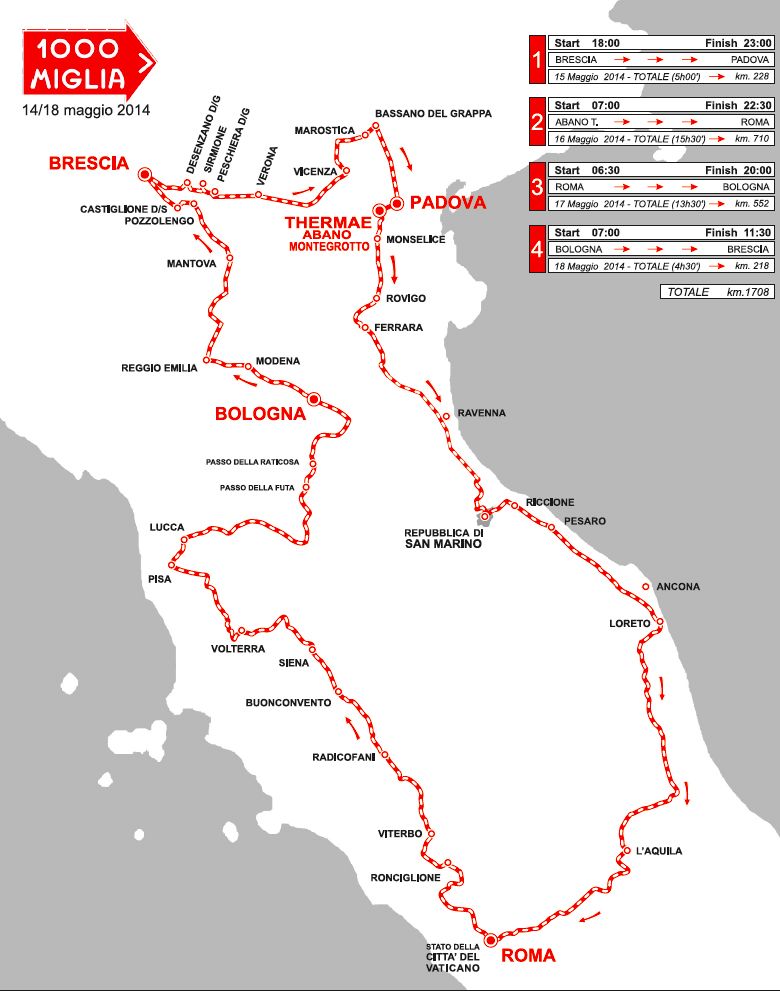 Hier im Nachtrag der Mille Miglia Streckenverlauf
