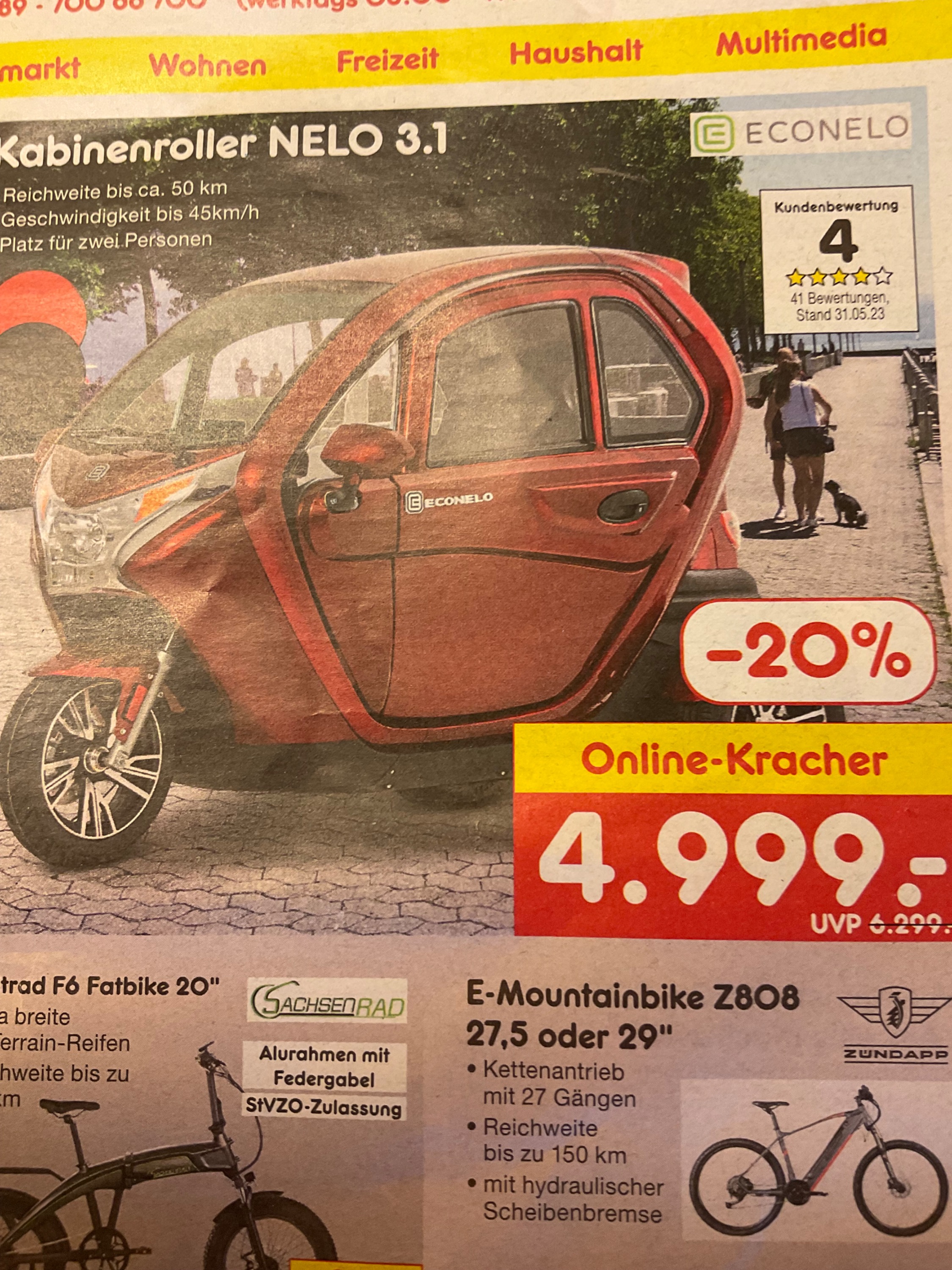Wie aus gut unterrichteten Kreisen bekannt wurde, wird es in Zukunft auf unseren Straßen sehr eng werden, da tausende Senioren ihren Rollator in die Ecke stellen und jetzt auf drei Räder umsteigen. Keine Steuer, kein Führerschein (für Senioren), einfach reinsetzen und gleich losfahren, (die Routine kommt dann schon in der Praxis) 45 km/h schnell, Aktionsradius 80 km mit einer E-Ladung, umfallen kann das Fahrzeug auch nicht (?) laut Werbung! Und Platz für zwei Personen (welcher Opa hat nicht eine Geliebte?) Und der Preis? Knapp 5000.-Euro, hat man in der Hosentasche! Altersbegrenzung? Auch für 100 jährige geeignet!